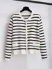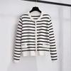 Cárdigan Suéter a Rayas Blancas y Negras para Mujer Otoño e Invierno 2023 Nuevo Elegante Estilo Pequeño Fragancia Chaqueta Tejida Top Otoño Versión Holgada