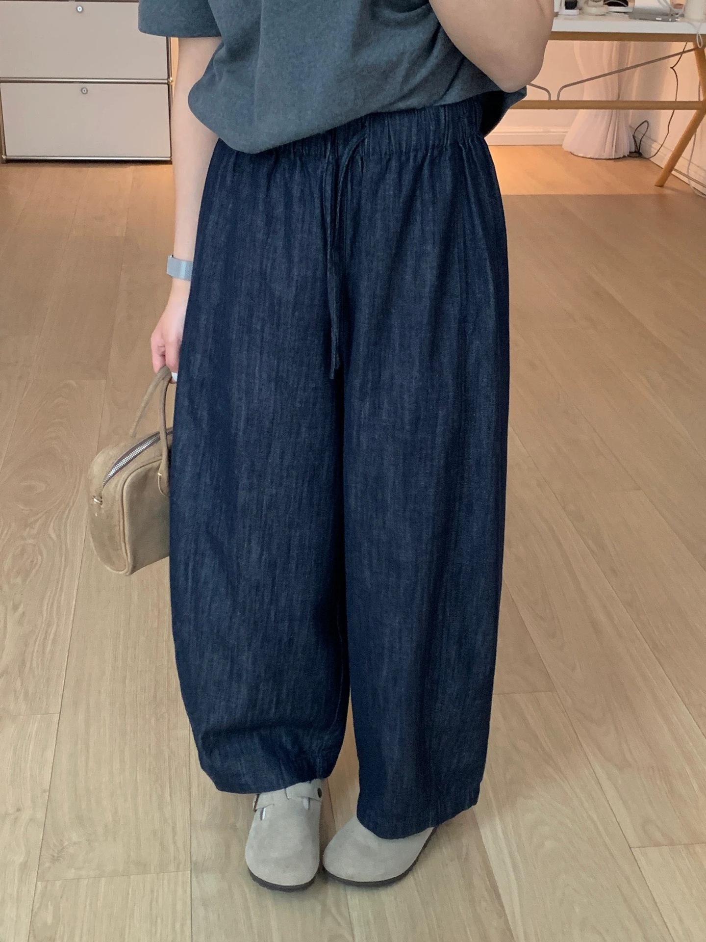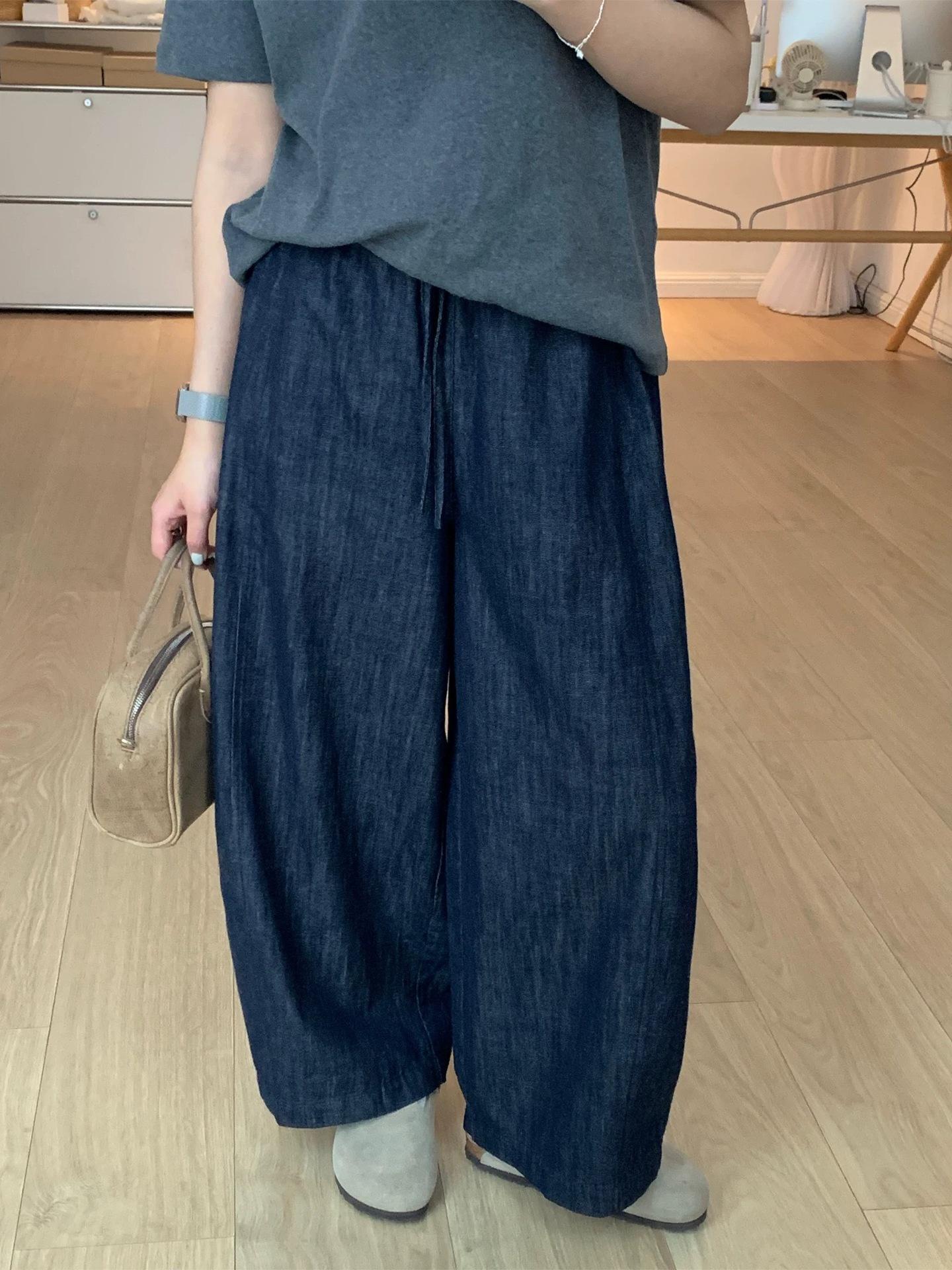Pantalones Harem de Mezclilla Delgados Retro con Cordón para Mujer 2025 Verano Nuevo Sueltos Adelgazantes Rectos de Pierna Ancha Casuales