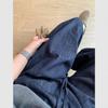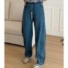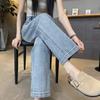 Zhou Mumu apit jeans retro con cordón para mujer 25 primavera nuevos pantalones casuales holgados rectos delgados de pierna ancha