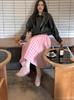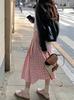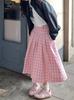 Verano Nuevo Falda de Cuadros Rosa para Mujer talla grande chica gordita Cintura Alta Look Delgado Pequeño Todo Combinable Línea A Falda Larga