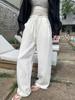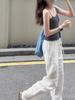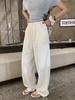 Pantalones casuales de verano para mujer, sencillos, finos, sueltos, de cintura alta, adelgazantes, blancos, rectos, de algodón y lino, con pierna ancha.