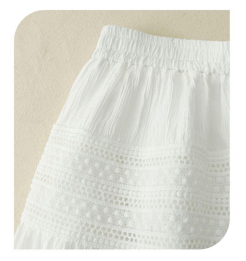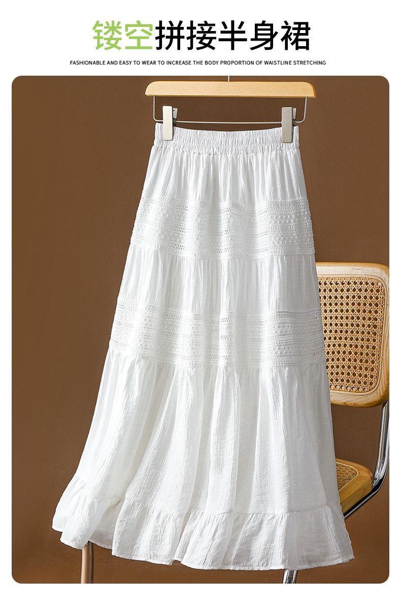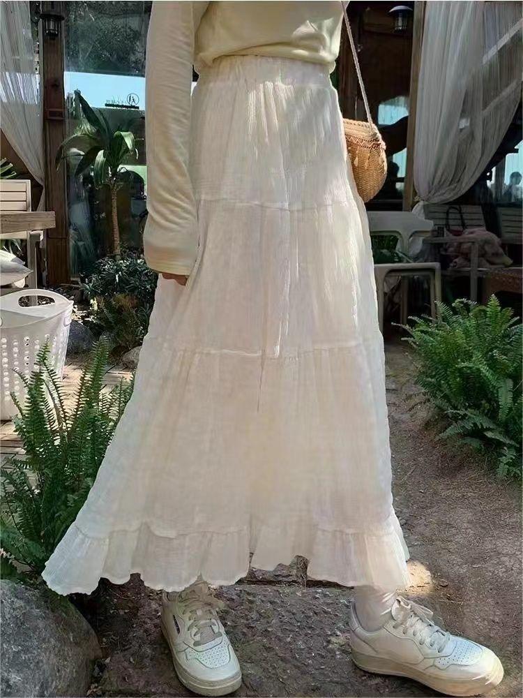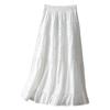 Falda Blanca para Mujer Primavera Delgada 2025 Nuevo Estilo Elástica Cintura Alta Costuras Chifón Falda Línea A Falda Larga Falda Paraguas