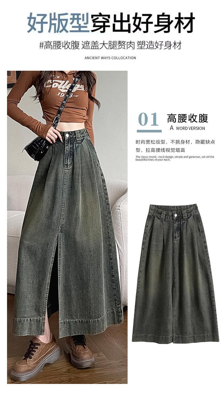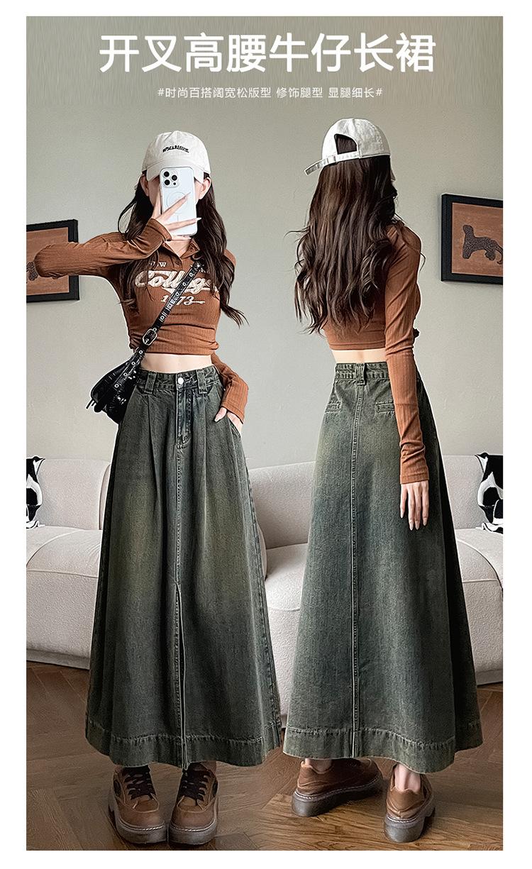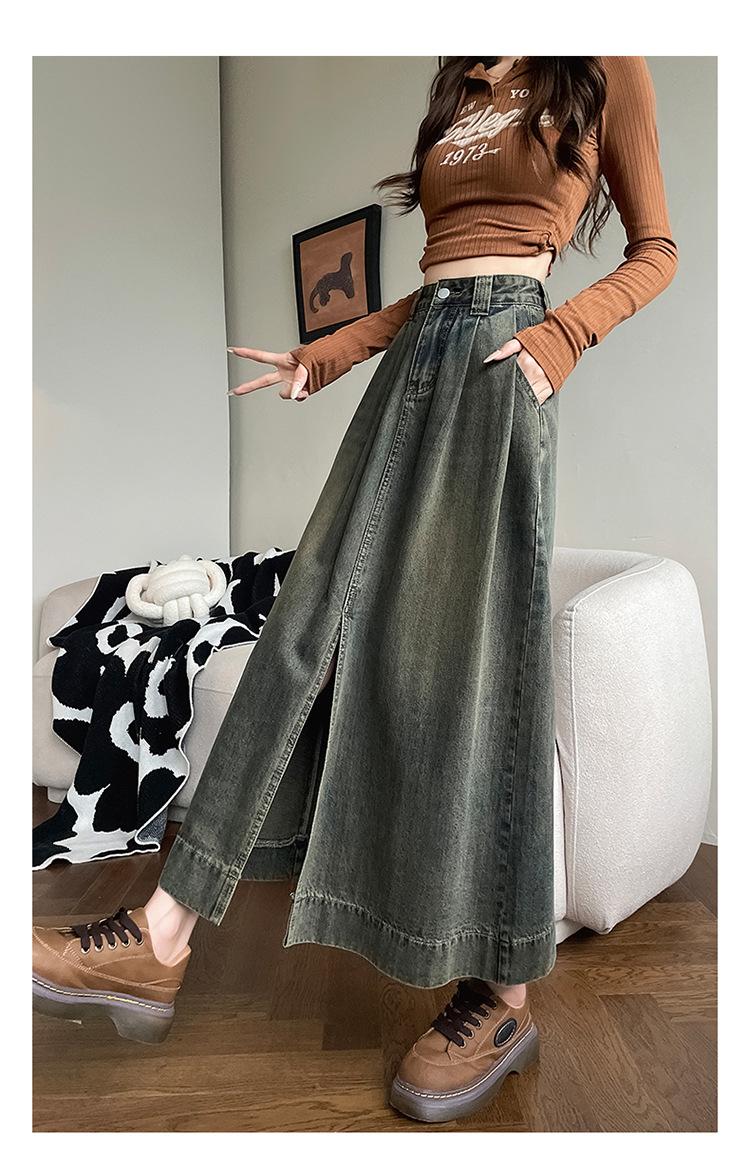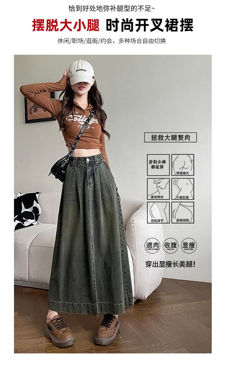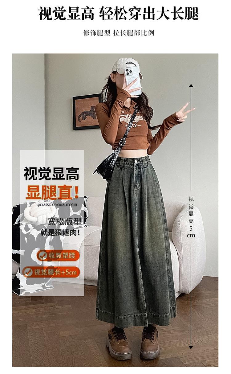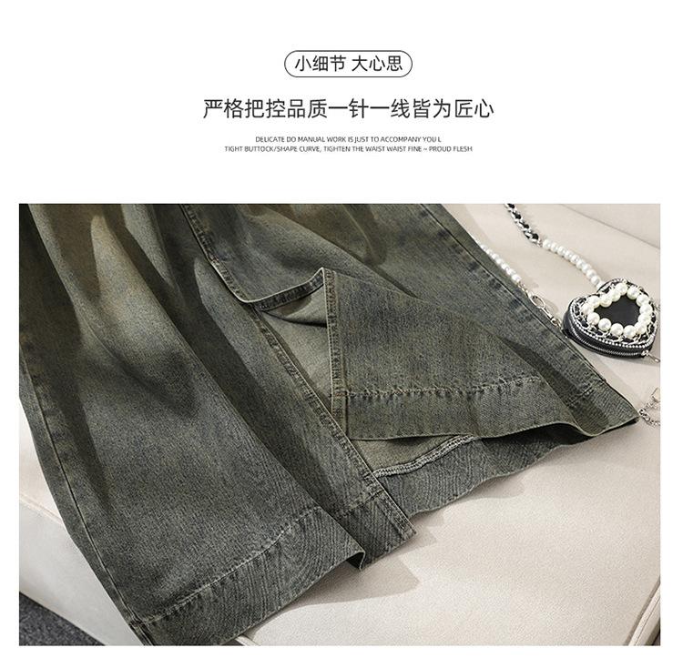 Otoño 2025 Falda de mezclilla para mujer falda de cadera de cintura alta nueva tubo recto suelta A falda larga