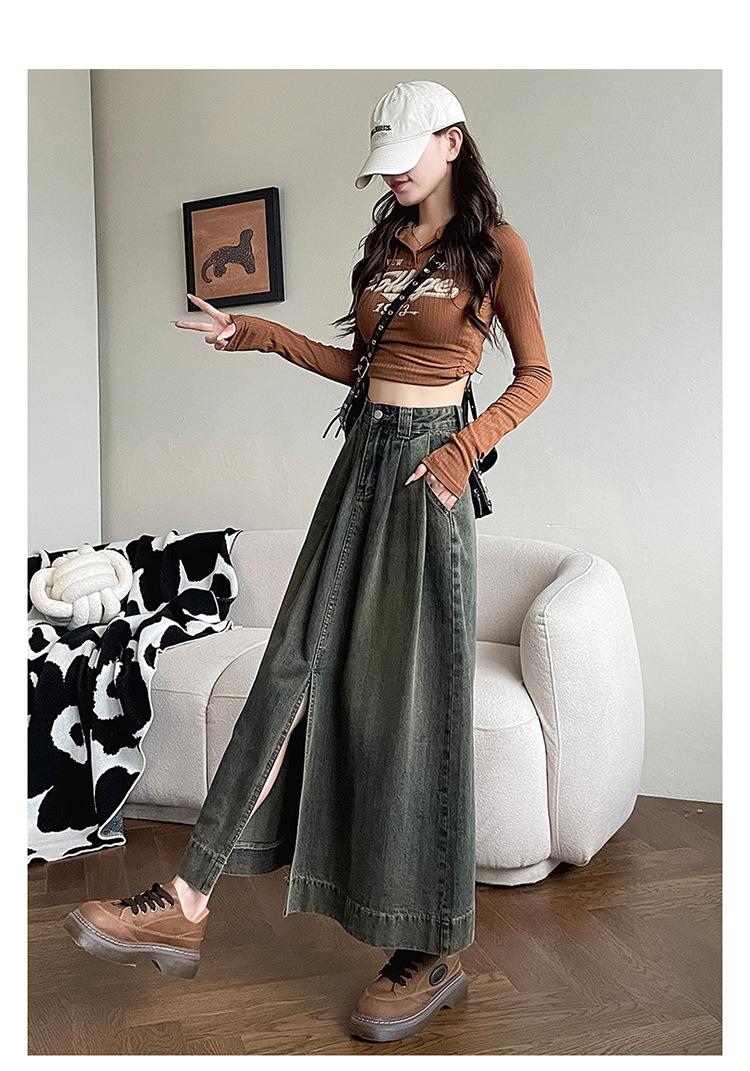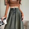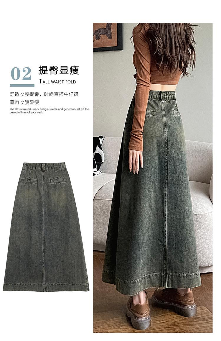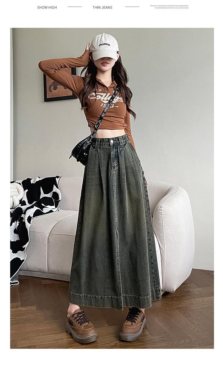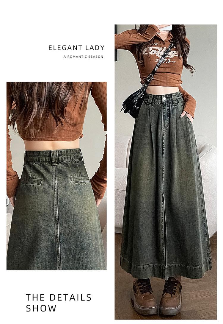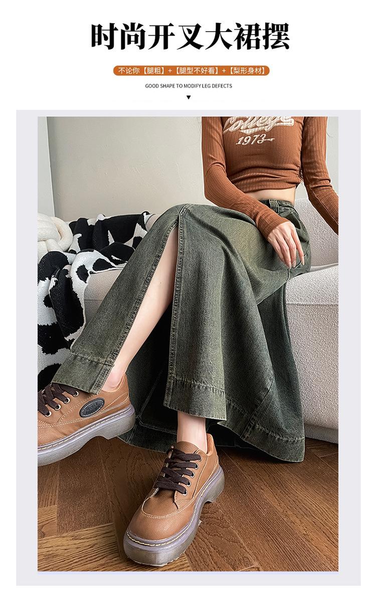 Otoño 2025 Falda de mezclilla para mujer falda de cadera de cintura alta nueva tubo recto suelta A falda larga