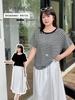 Camiseta de Verano Nueva de Estilo Nicho Manga Corta Talla Grande para Mujer Pulóver Rayado Top Adelgazante para Mujeres Curvilíneas Top Versátil 142451