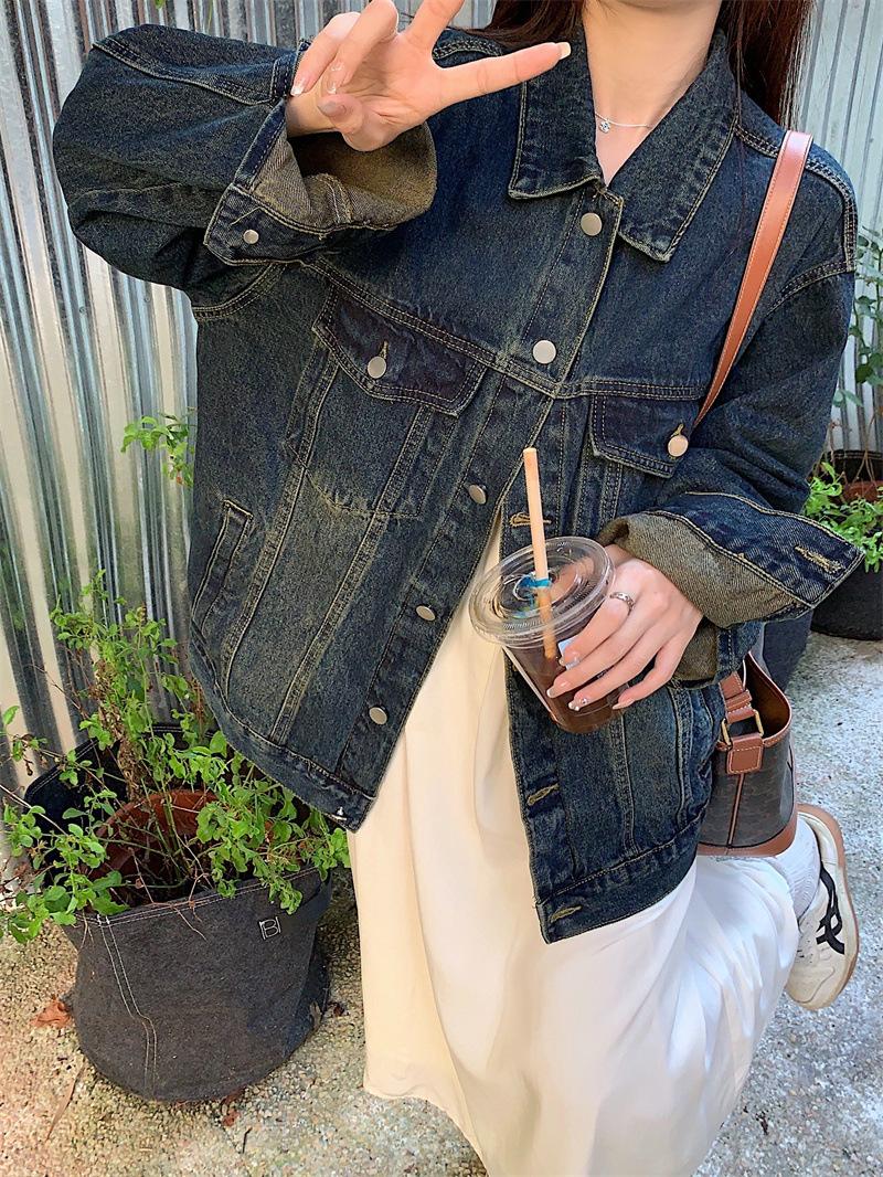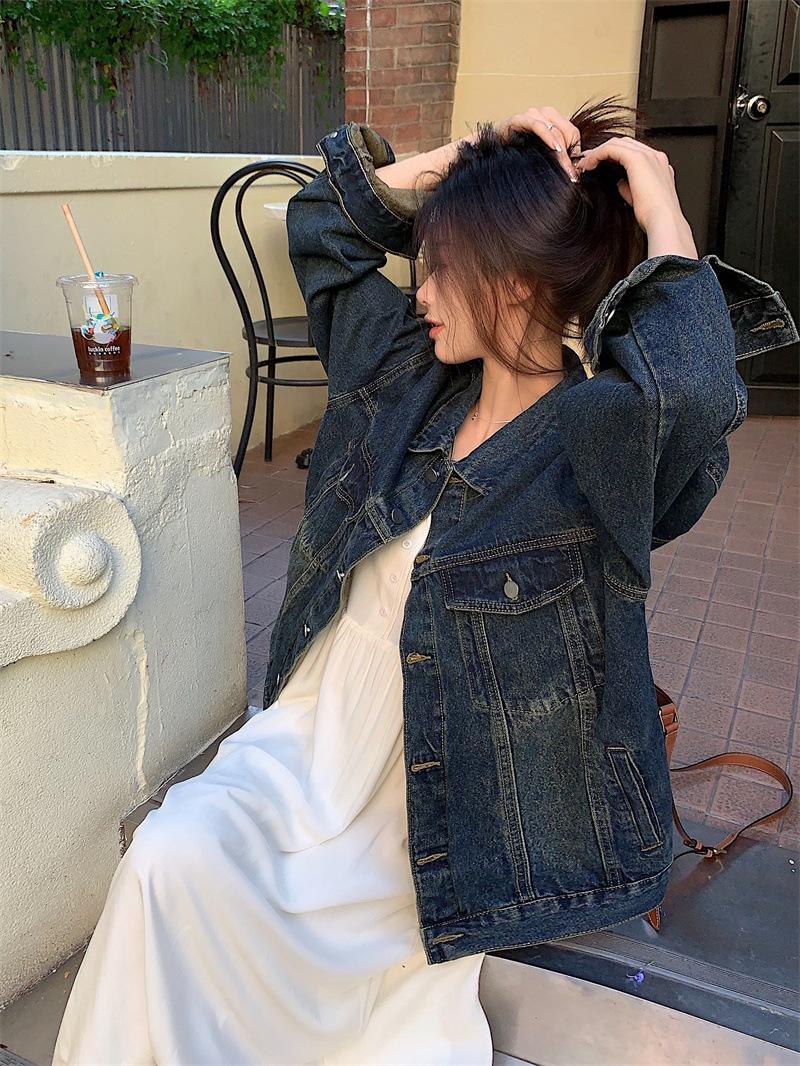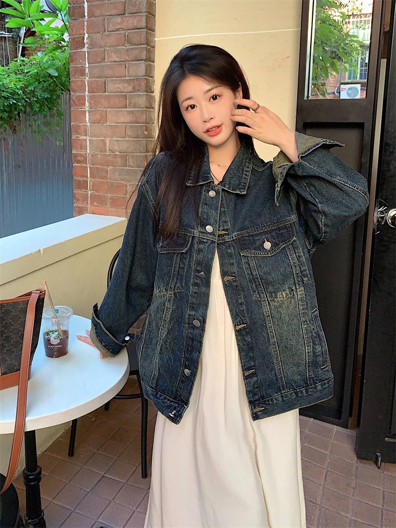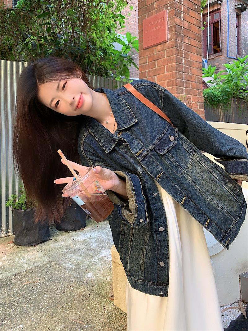 Chaqueta de mezclilla retro de estilo coreano para mujer Otoño temprano 2023 Nueva chaqueta holgada casual elegante versátil Ins Trend