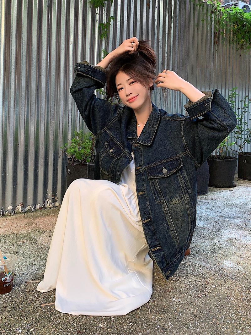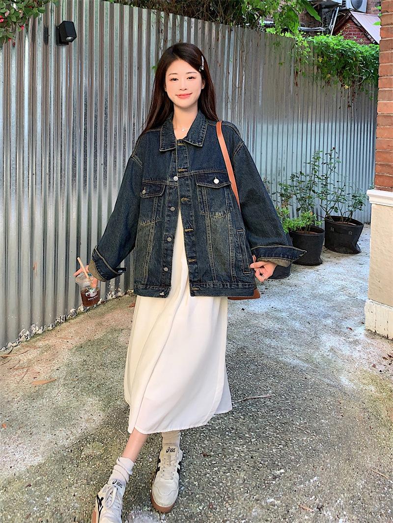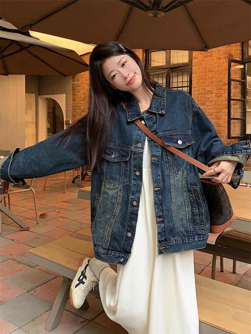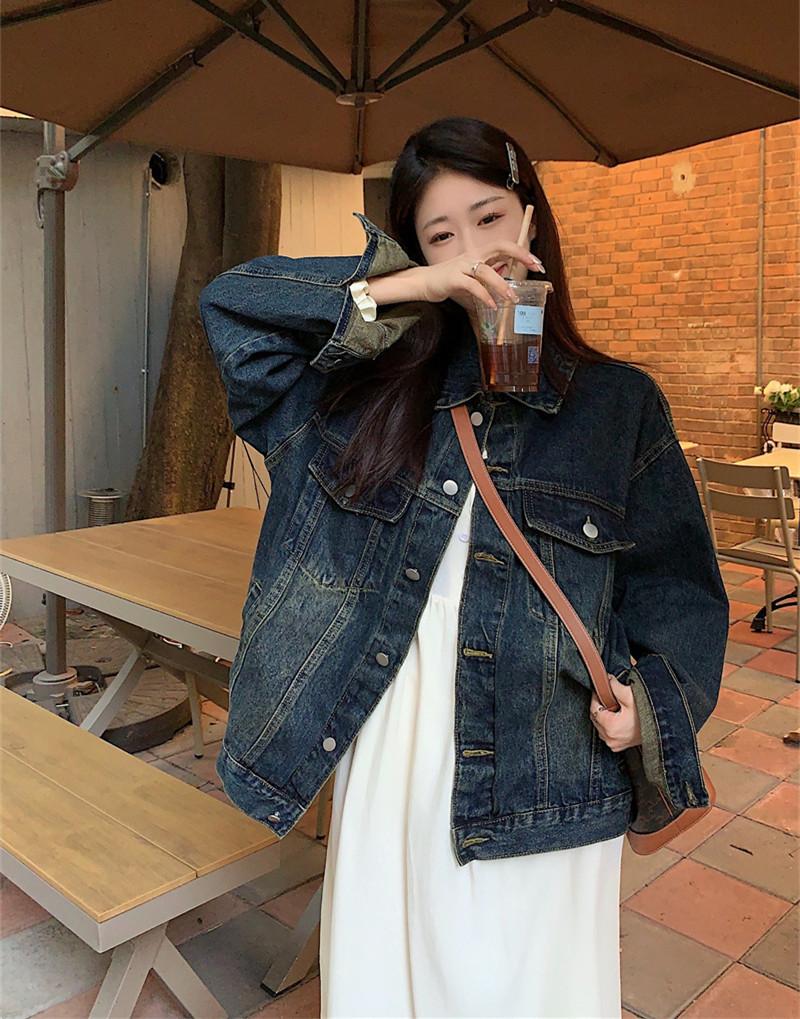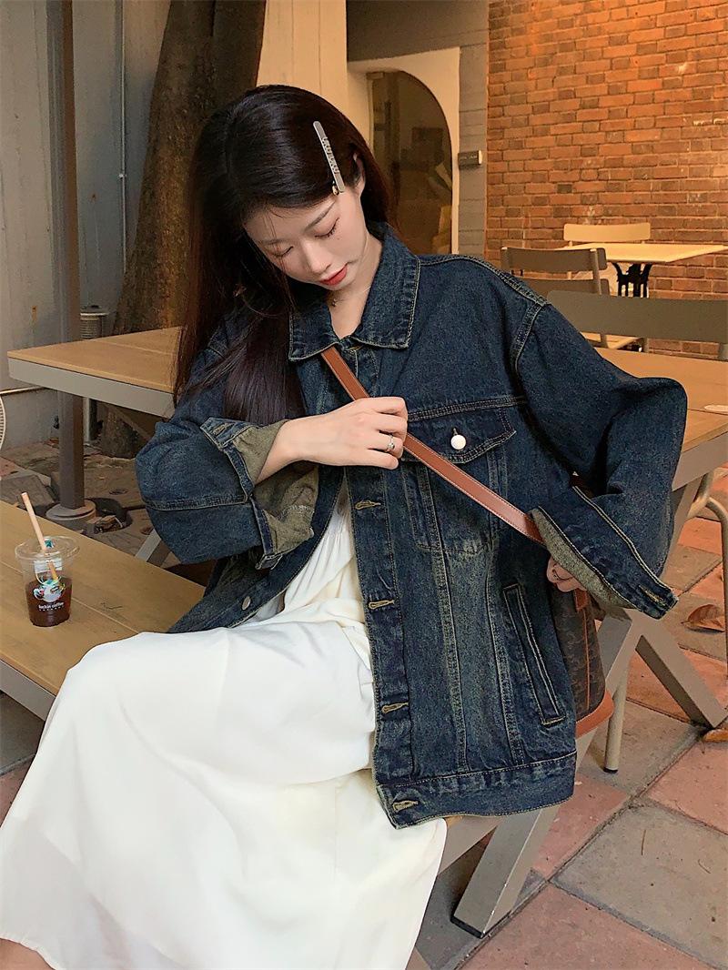 Chaqueta de mezclilla retro de estilo coreano para mujer Otoño temprano 2023 Nueva chaqueta holgada casual elegante versátil Ins Trend