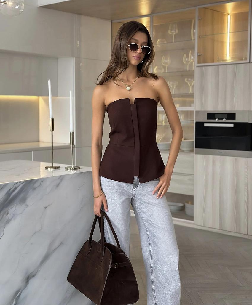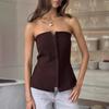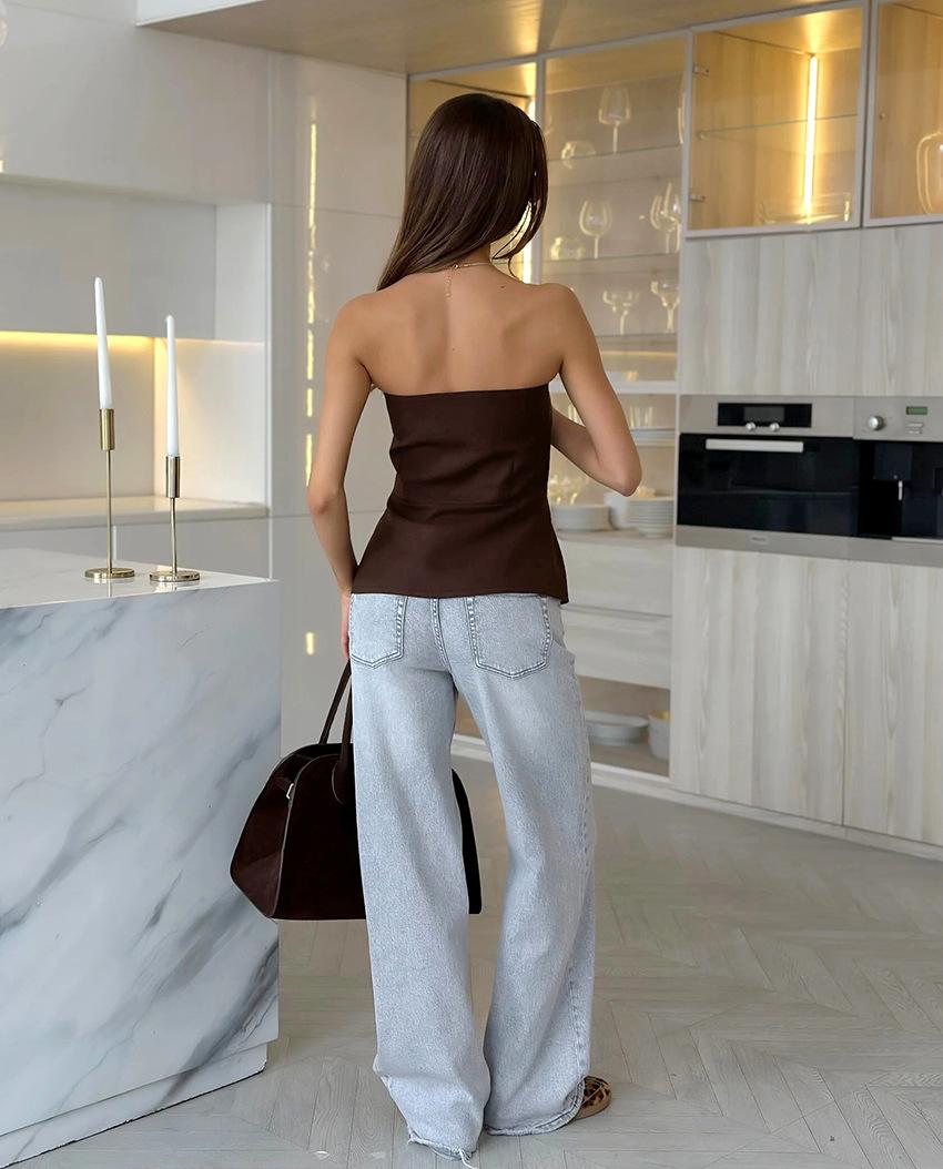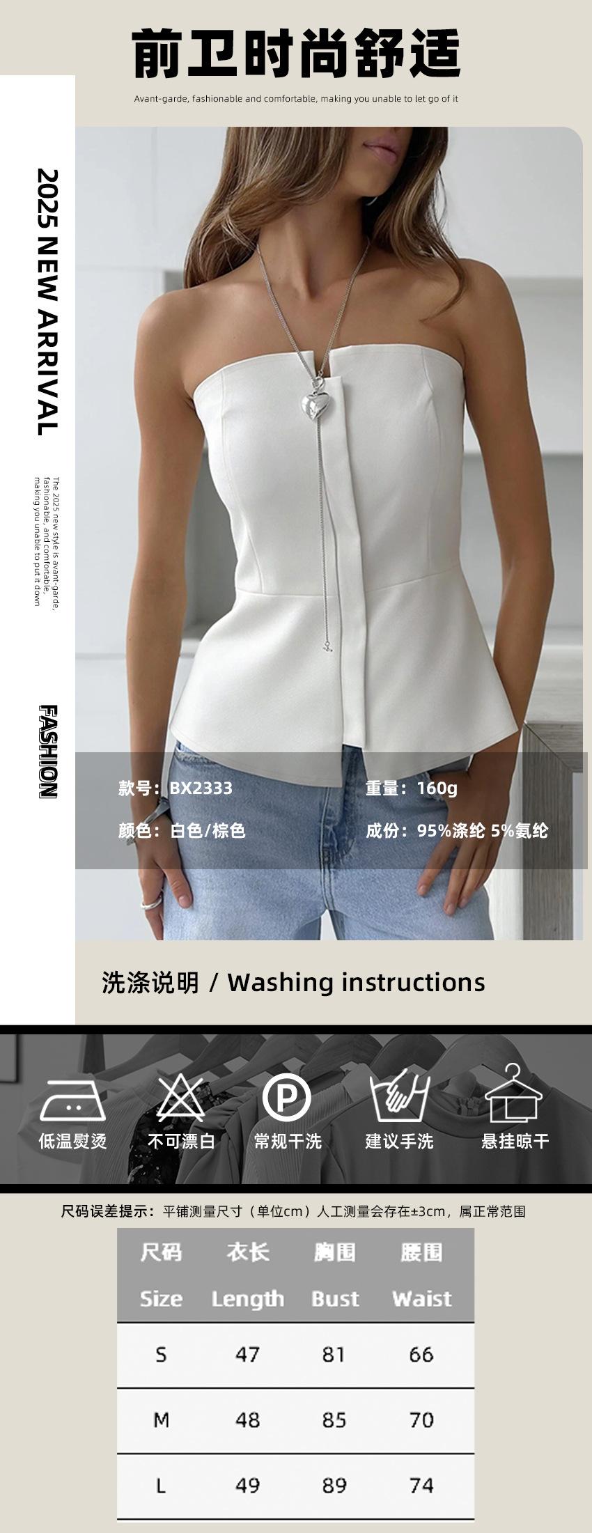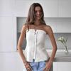 Moda de Verano 2025 Chaleco Strapless para Chica Hot Top Blanco Simple Ajustado sin Mangas con Sentido del Diseño Ropa de Mujer