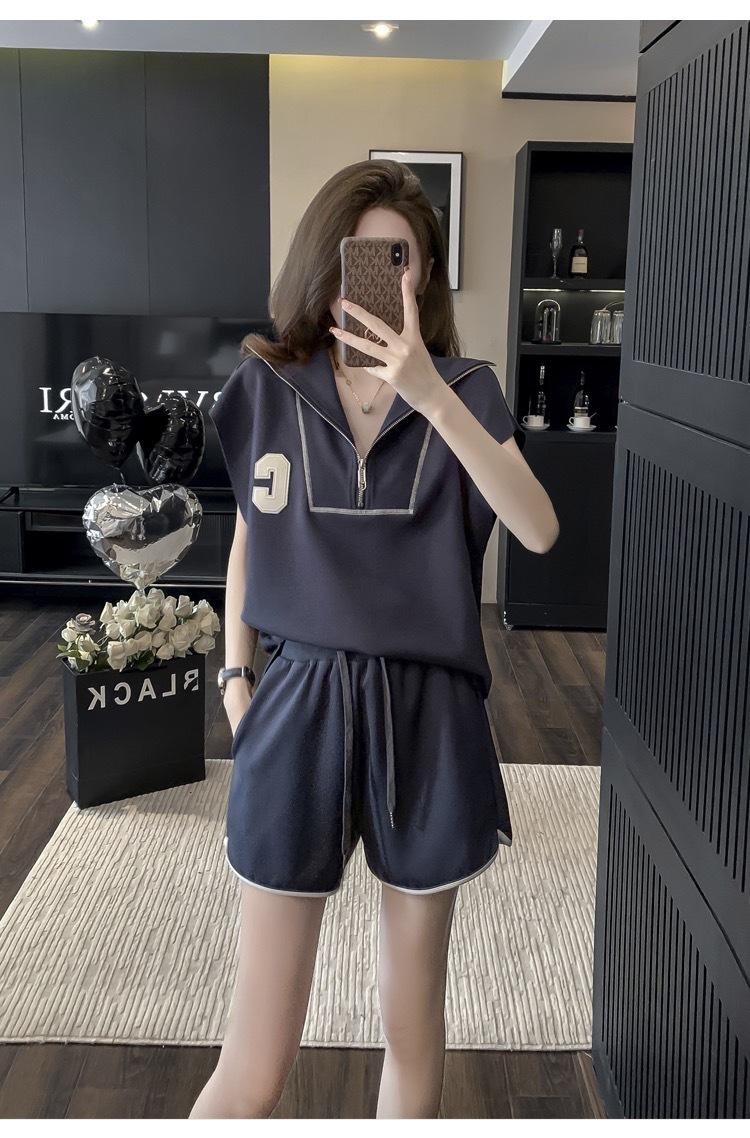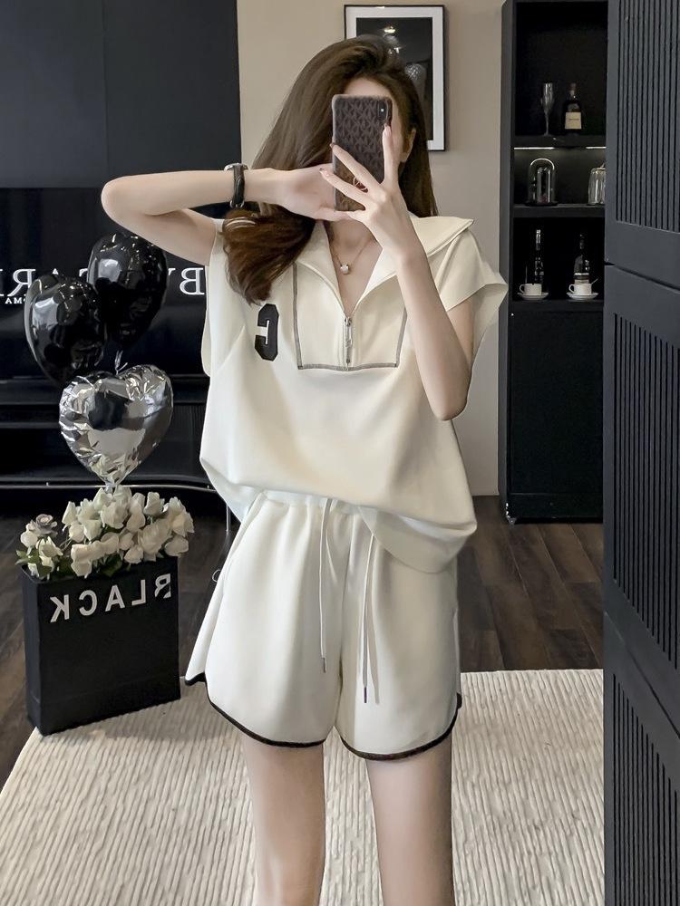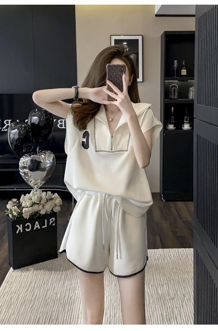Chica gordita Talla Grande 150.00kg Moda Casual Traje Deportivo para Mujer Verano Elegante Reductor de Edad Mangas Cortas Shorts Conjunto de Dos Piezas 2