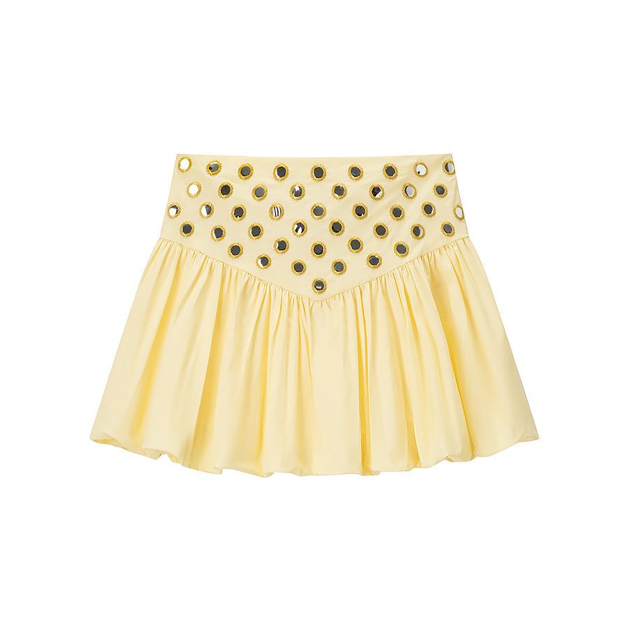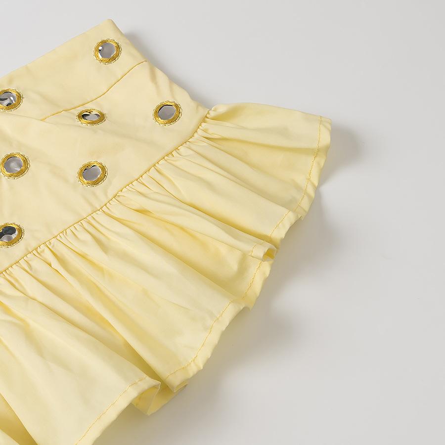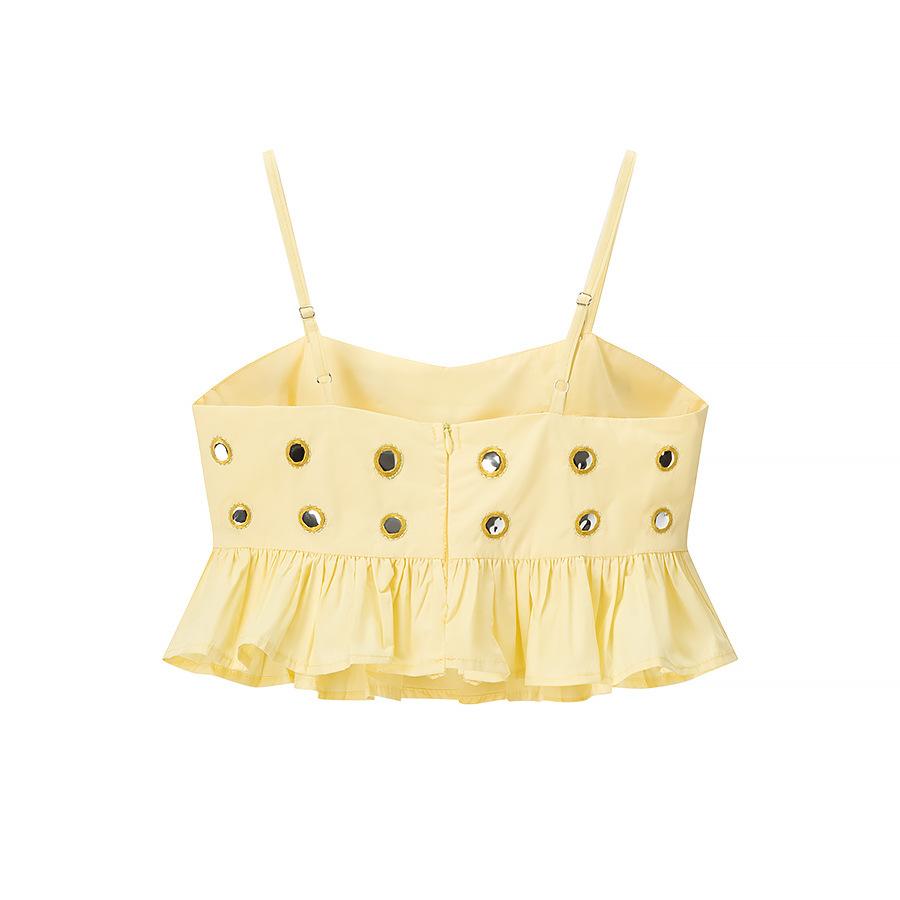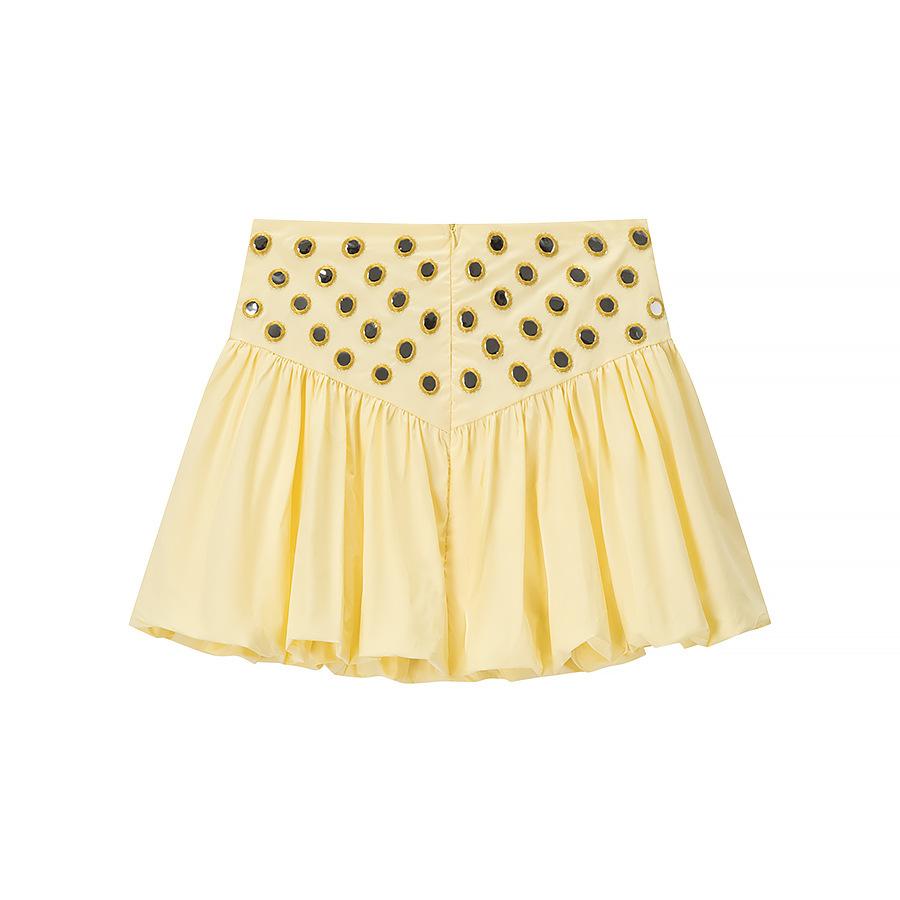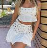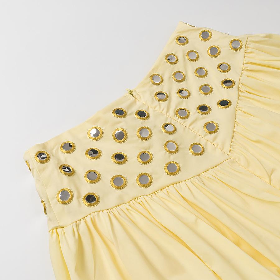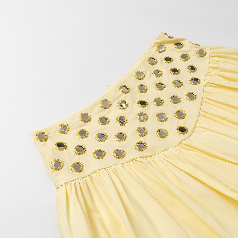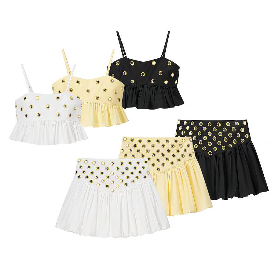 Conjunto de Camisola con Dobladillo Fruncido y Falda Media con Decoración Metálica para Verano 2025, Nuevo, Transfronterizo, Comercio Exterior