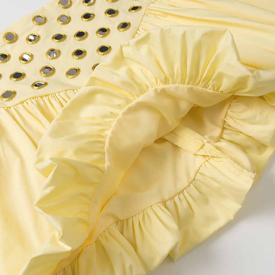 Traje de sobrefalda con tirantes y dobladillo plisado decorativo metálico nuevo de verano 2025 para comercio exterior transfronterizo