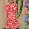 Vestido de Moda para Mujer Estampado Floral de Cintura Alta Talla Grande Primavera y Verano 2024 Transfronterizo Amazon Europeo y Americano