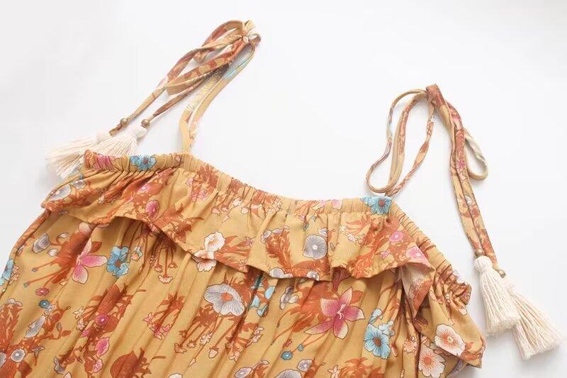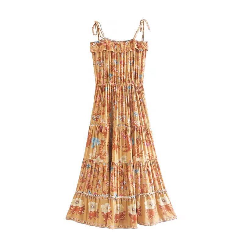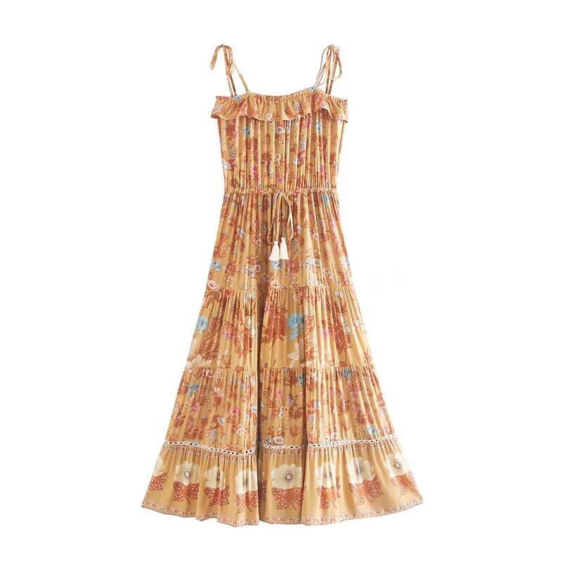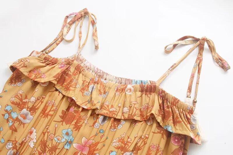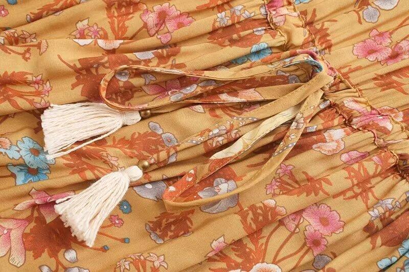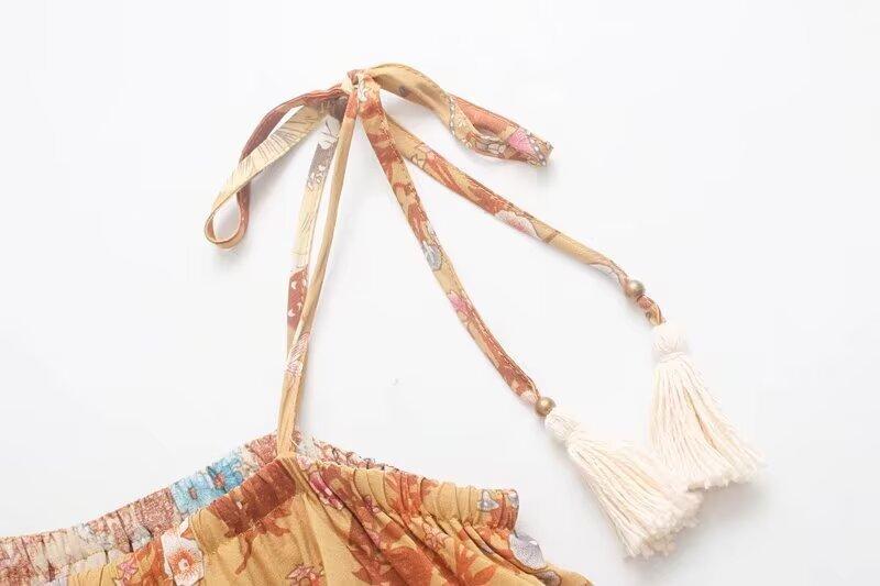 Ropa de Mujer Verano 2025 Nueva Estilo Europeo y Americano Moda Cintura Estampado Ron Borla Vacaciones Vestido Slip