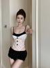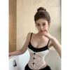 Tirantes de Encaje con Lazo de Color Contrastante para Mujer, Chaleco Delgado de Verano sin Mangas, Top Sexy Ajustado de Una Pieza para Interior Puro Deseo
