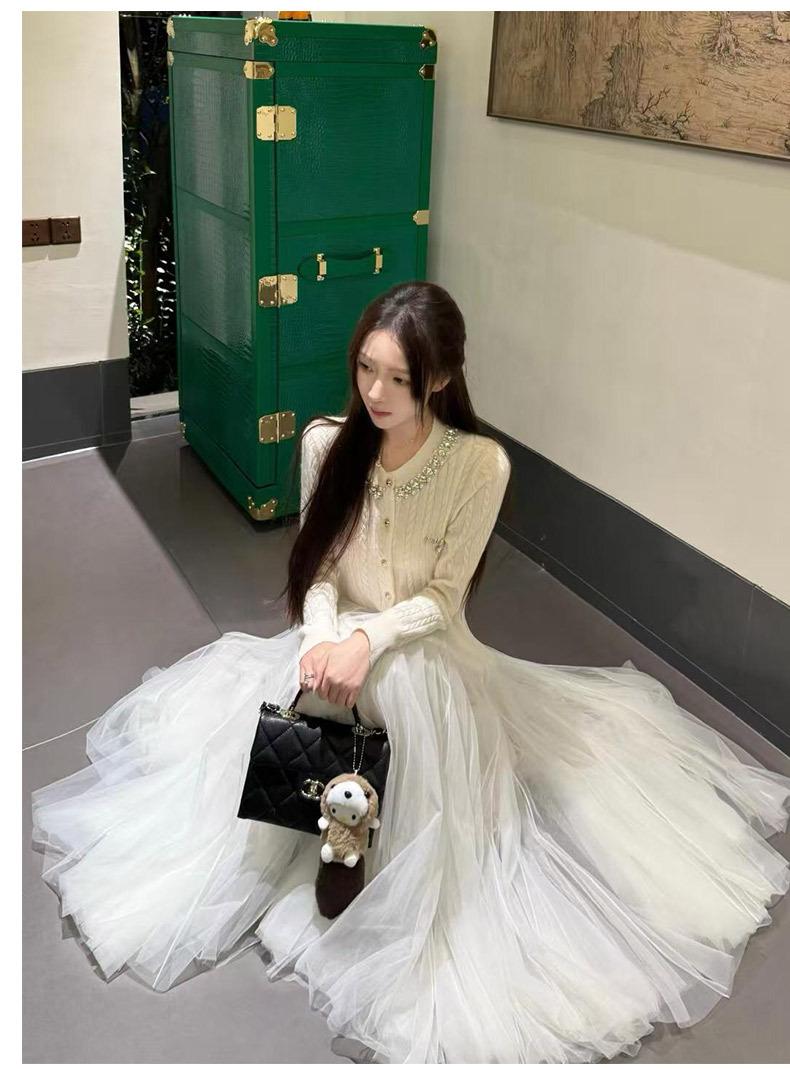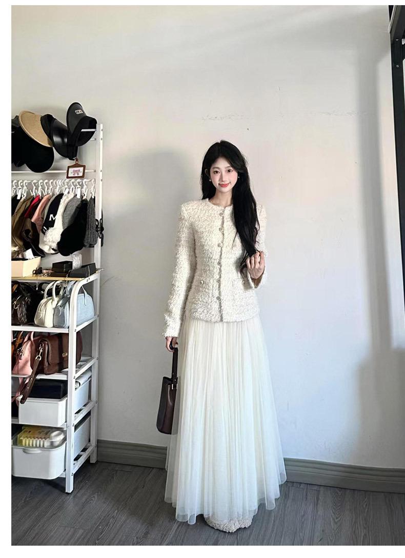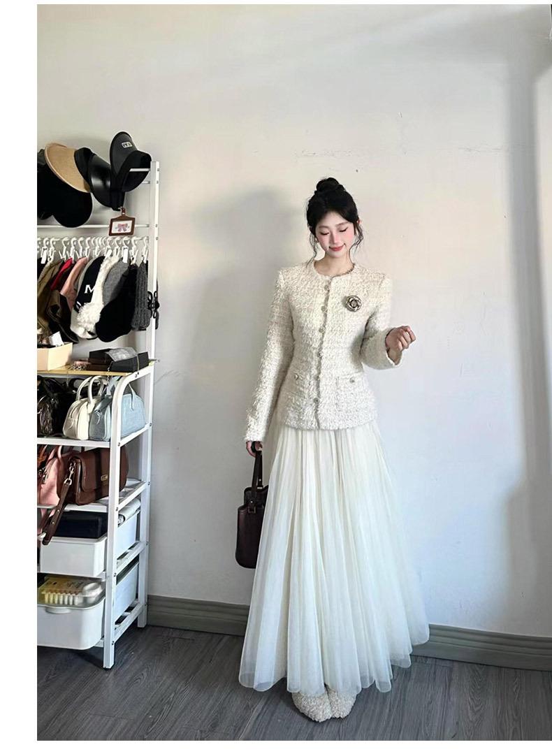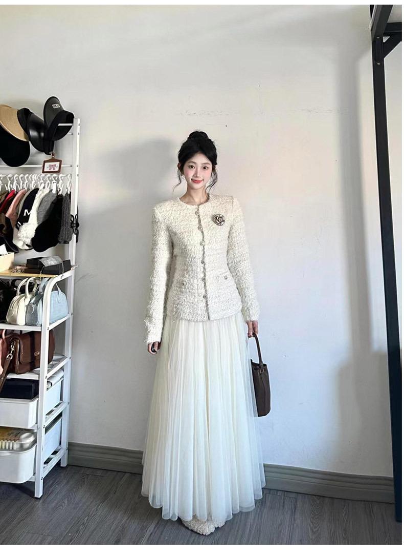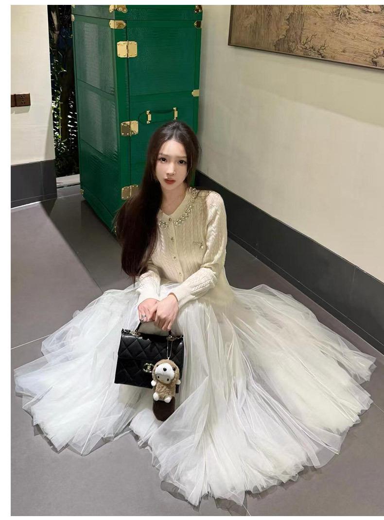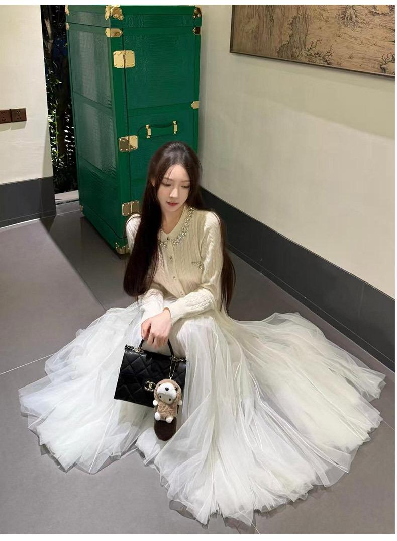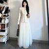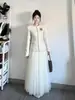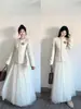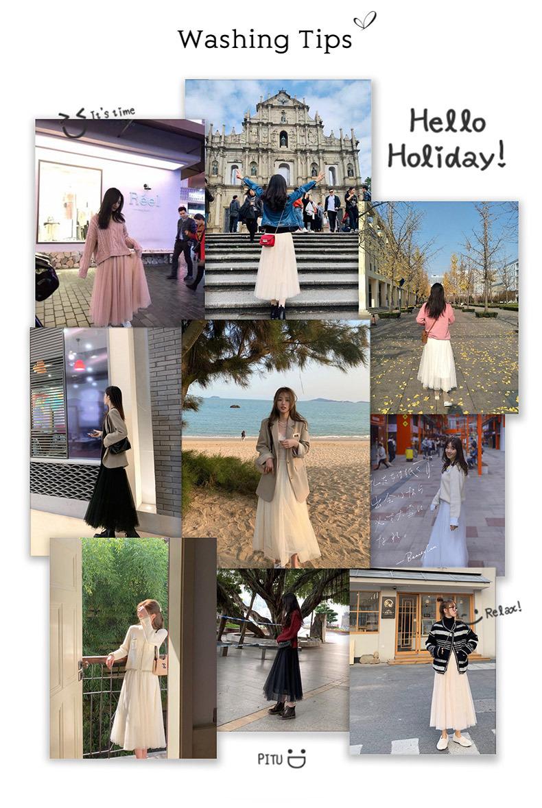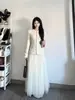 Falda Blanca de Malla para Mujer Verano 2025 Nueva Falda de Gasa Midi Cintura Alta Look Adelgazante Línea A Dobladillo Amplio Falda Abullonada