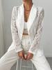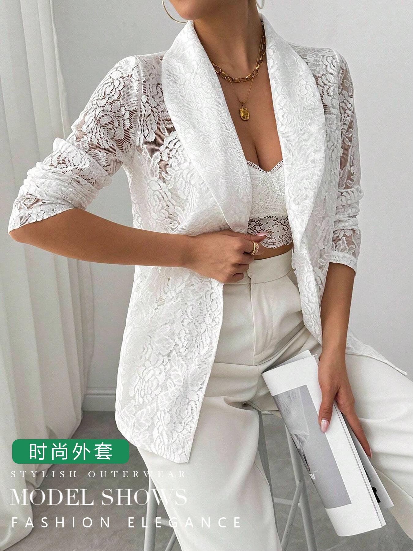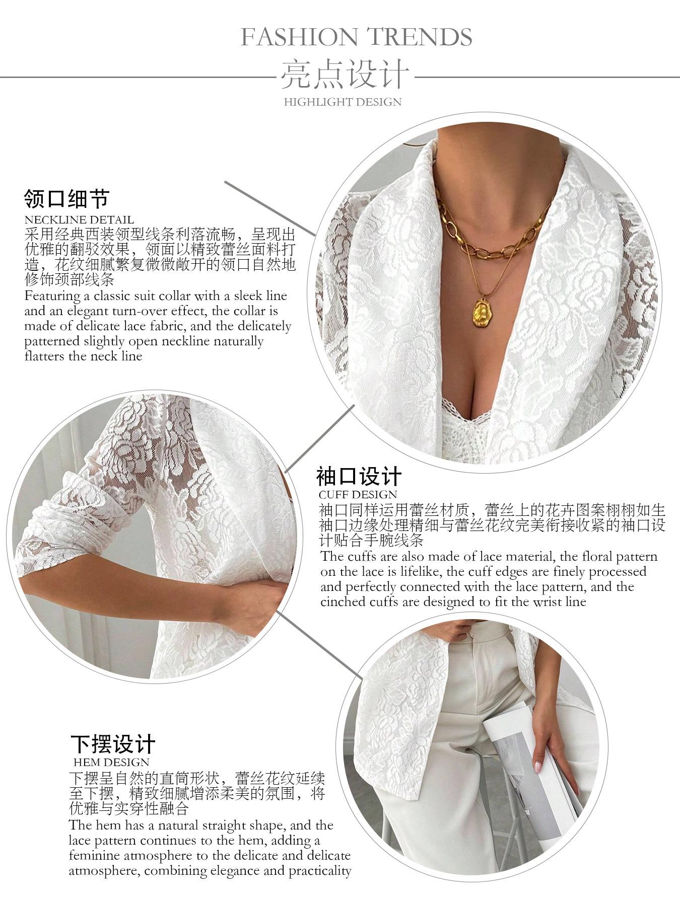 Amazon Transfronterizo Europeo y Americano 2025 Otoño e Invierno Moda para Mujer Encaje Bordado Blanco Casual Nuevo Traje Chaqueta para Mujer