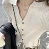Cárdigan de punto con cuello polo interior estilo francés para mujer, otoño e invierno, solapa corta, suéter básico, top de manga larga ajustado