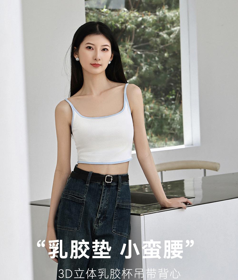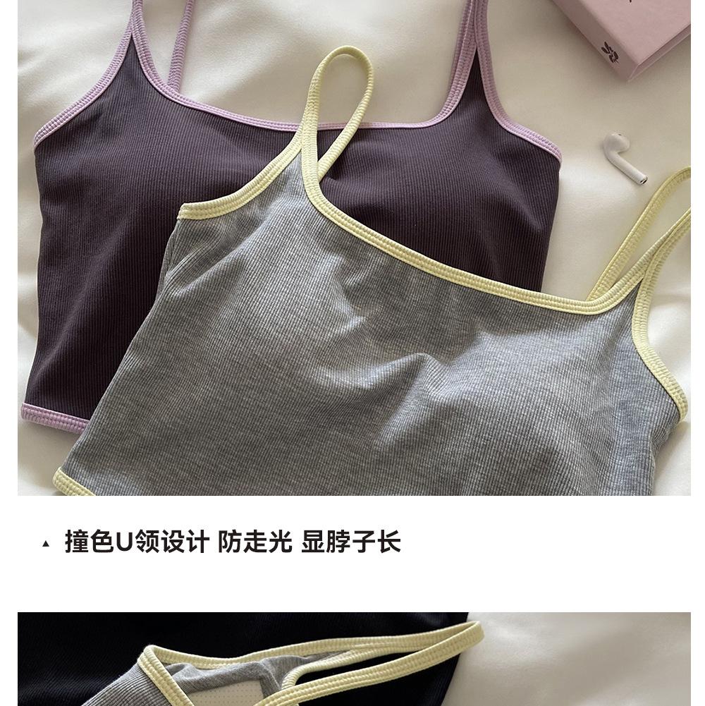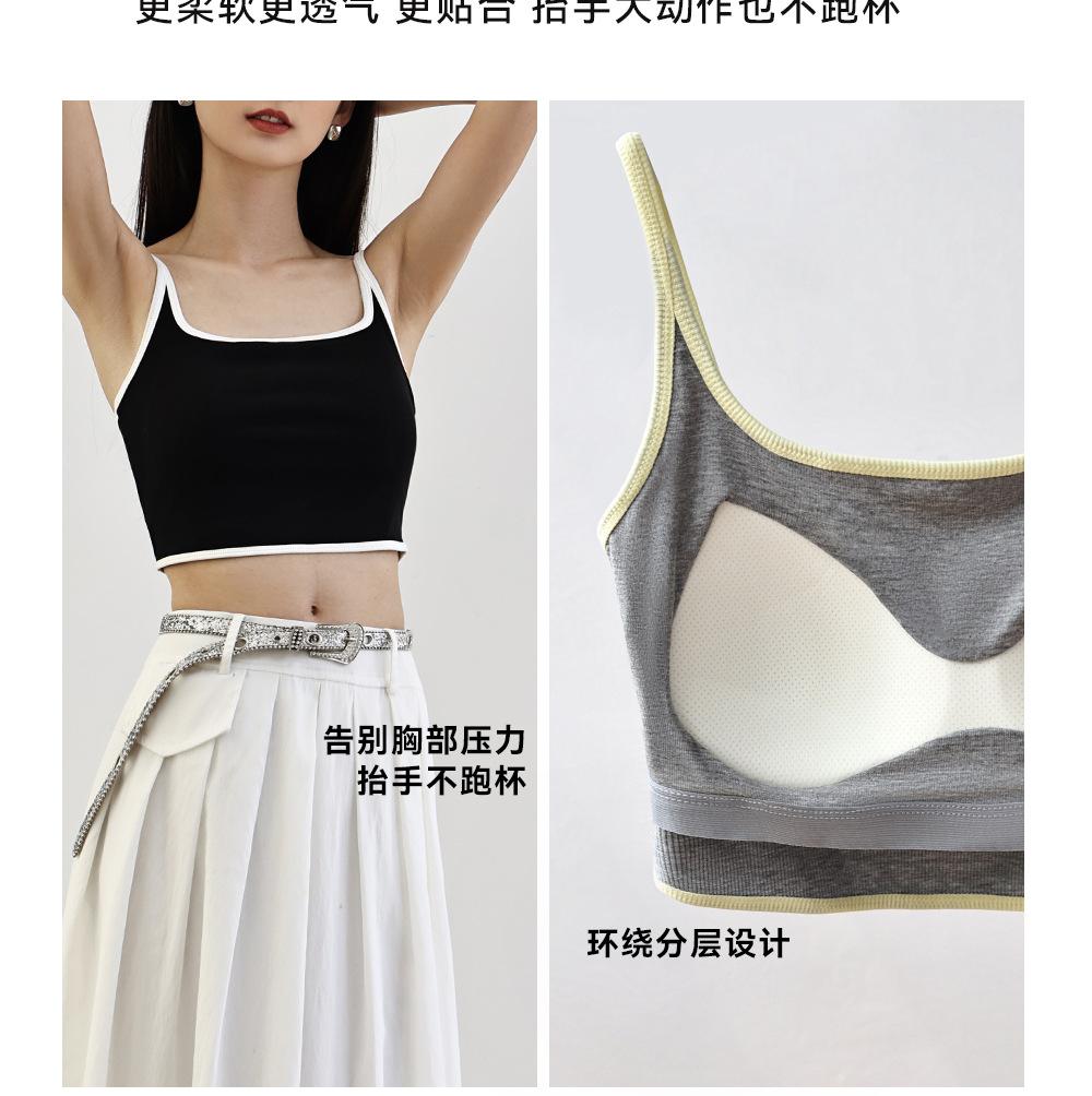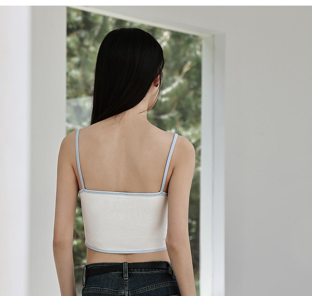 Camisola de Contraste Sujetador sin Aros para Mujer Una Pieza Espalda Hermosa Blanco Verano Ropa Exterior Base Top Interior