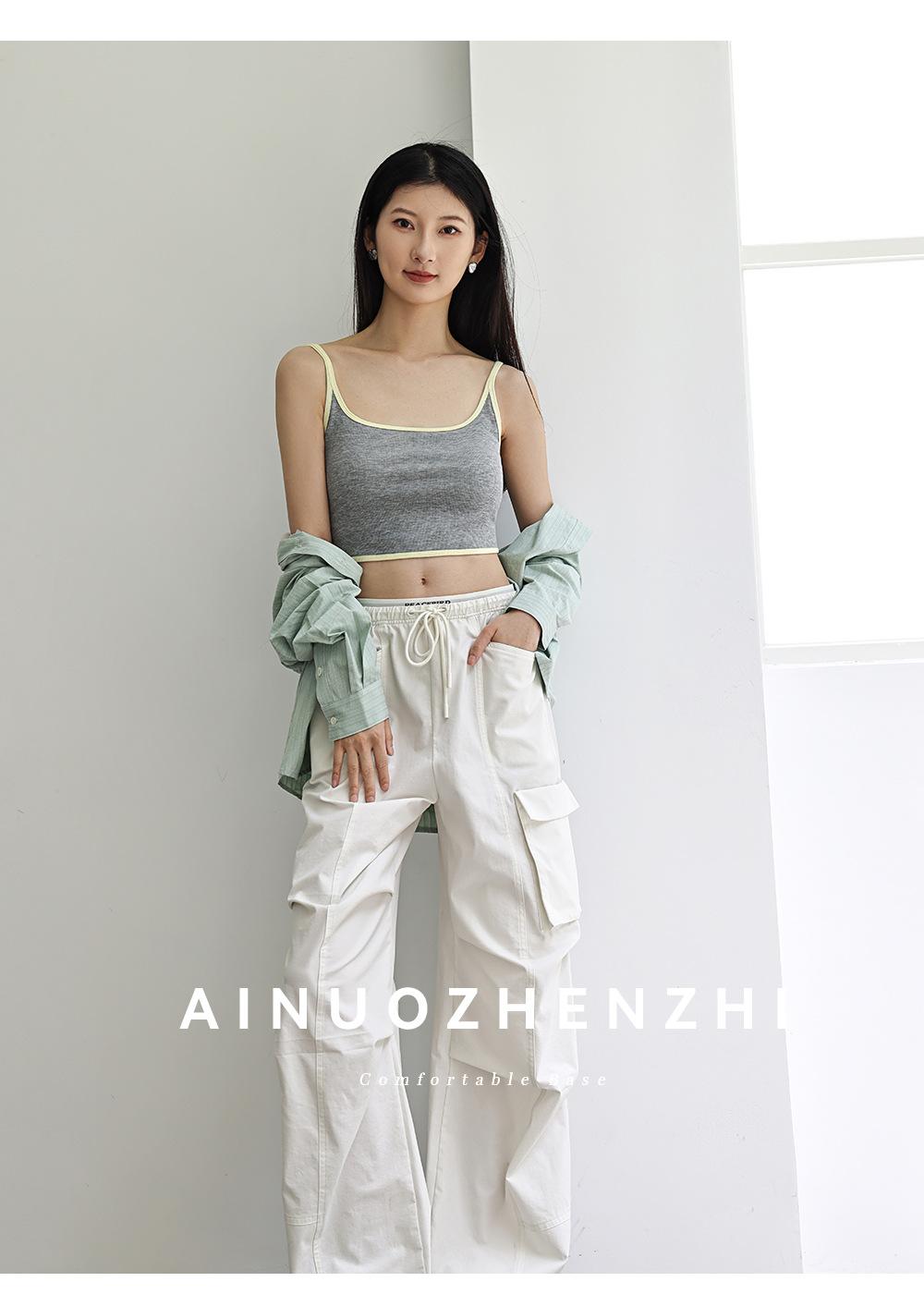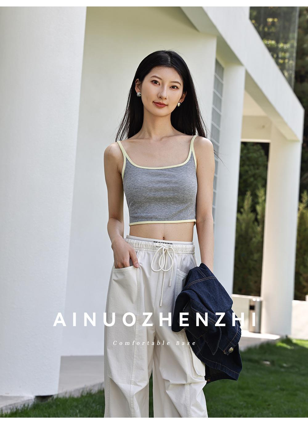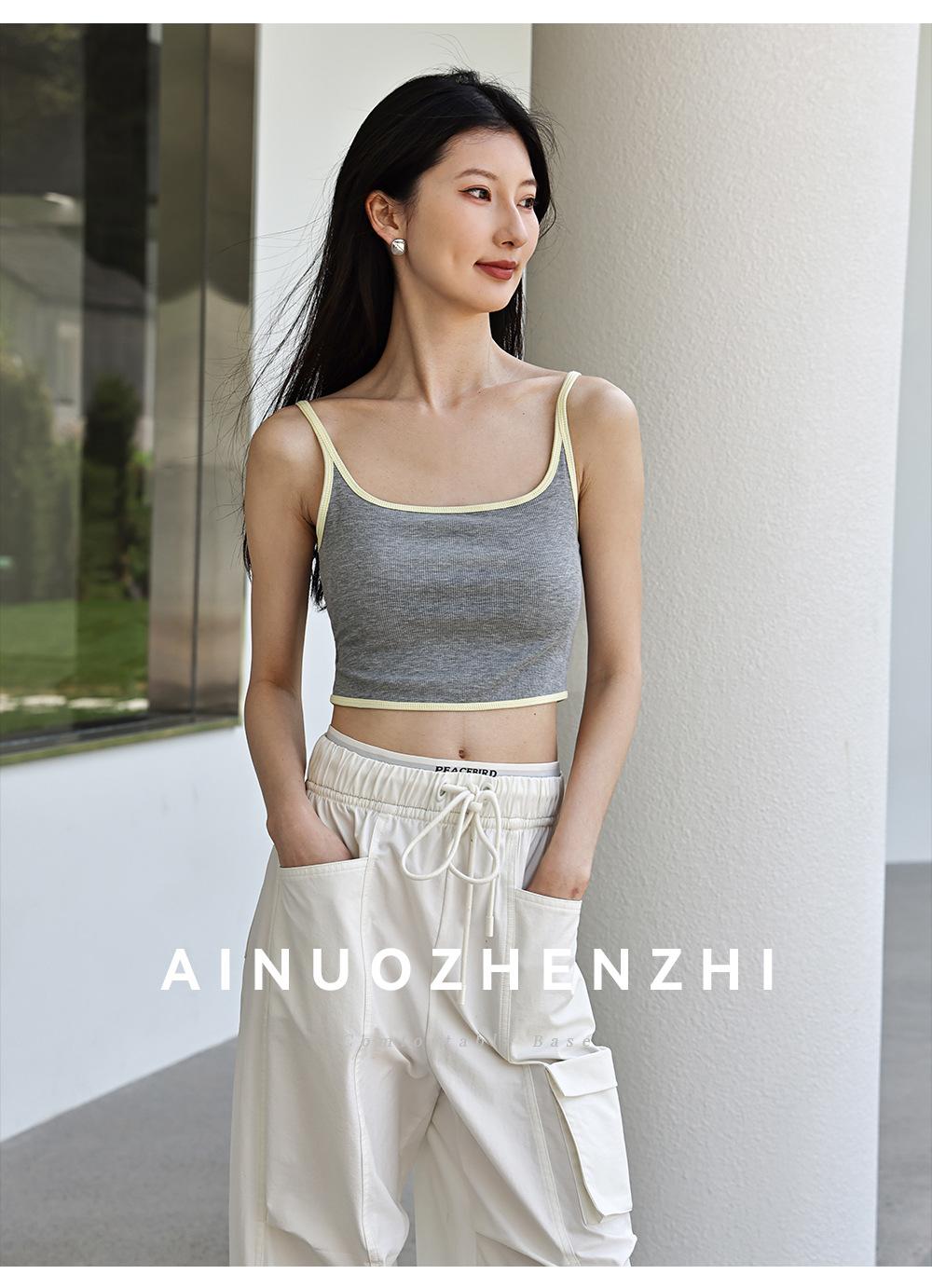 Camisola de Contraste Sujetador sin Aros para Mujer Una Pieza Espalda Hermosa Blanco Verano Ropa Exterior Base Top Interior
