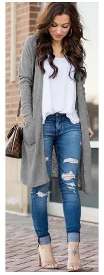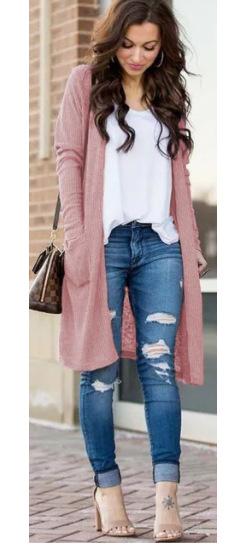 Cárdigan para mujer Abrigo Comercio Exterior AliExpress Otoño Invierno Tejido Color Sólido Bolsillo Casual Sin Botones Abrigo Largo
