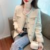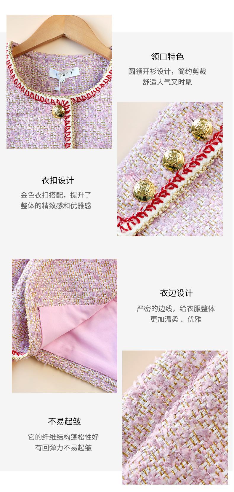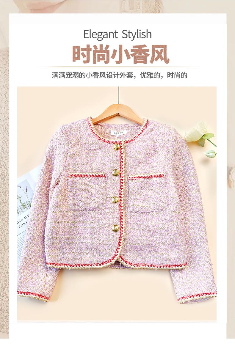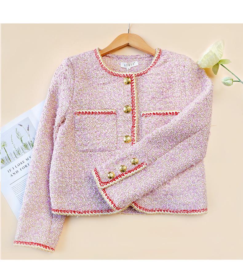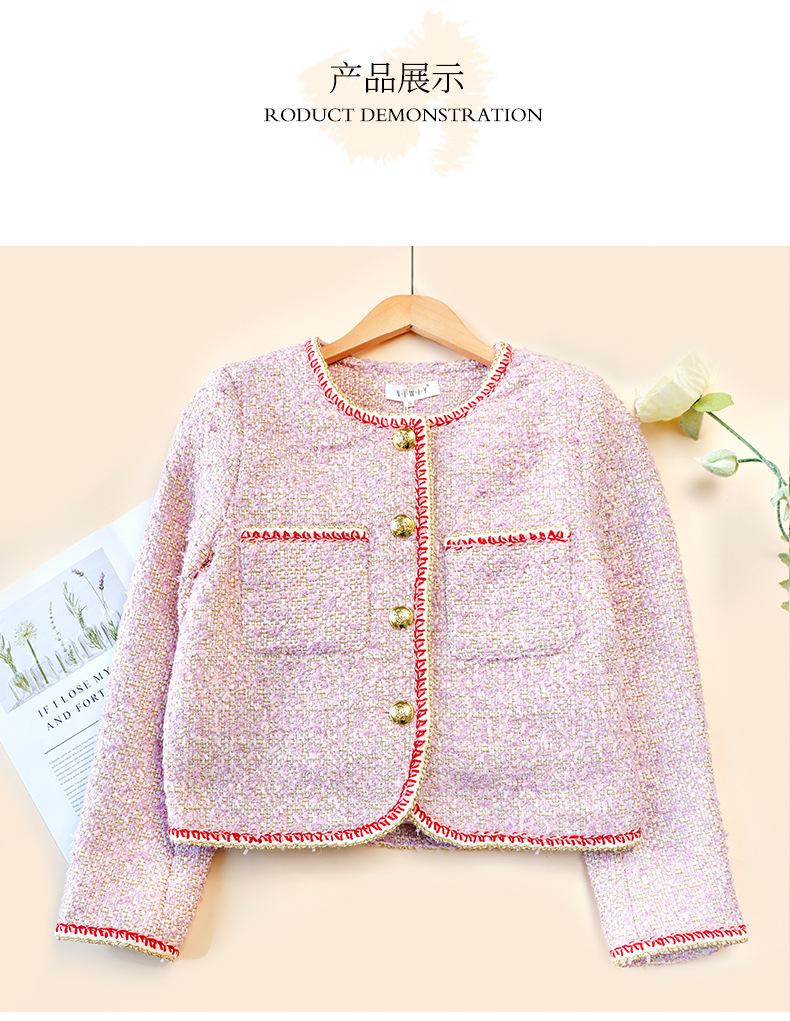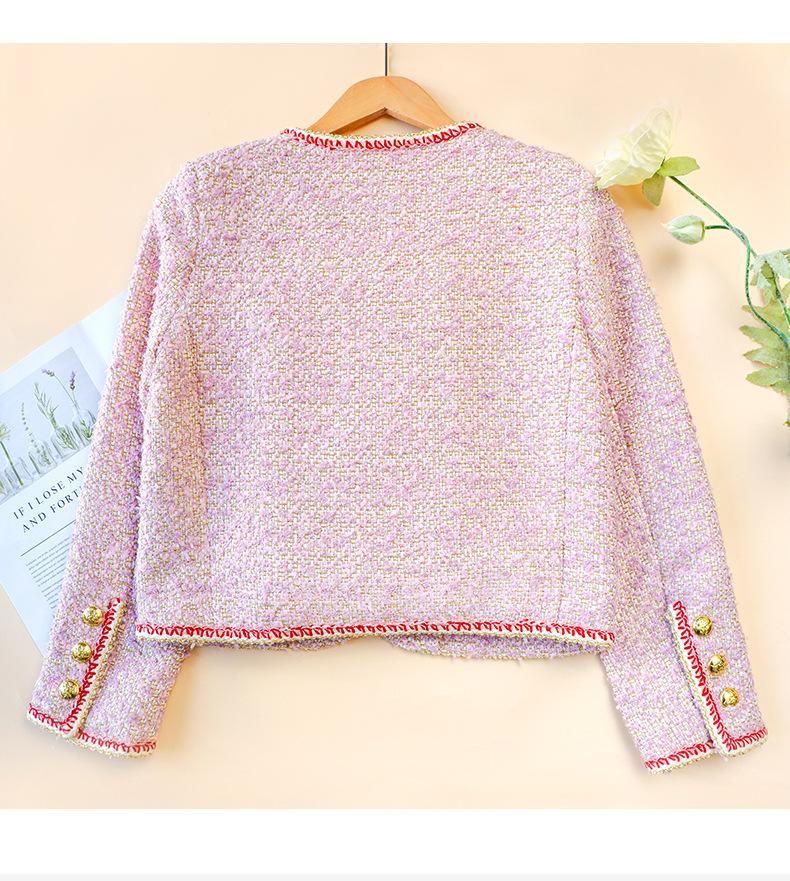 Abrigo Elegante Estilo Chanel de Cuello Redondo para Mujer Primavera Otoño e Invierno Moda Estilo Coreano Estilo Corto Estilo Socialité Chaqueta Abrigo para Mujer