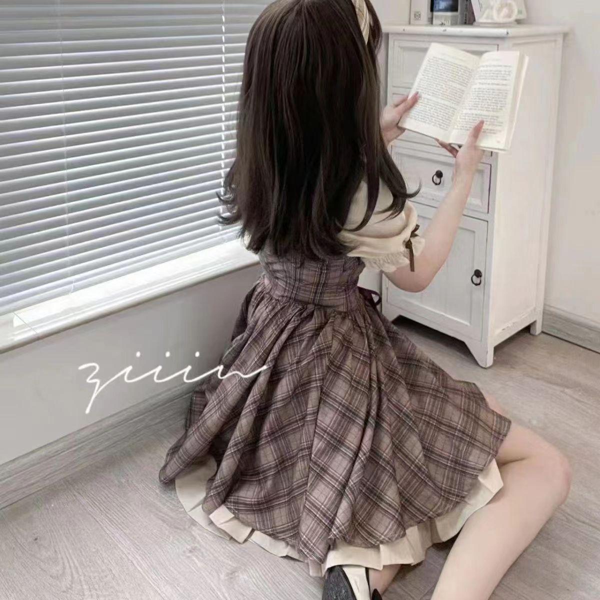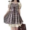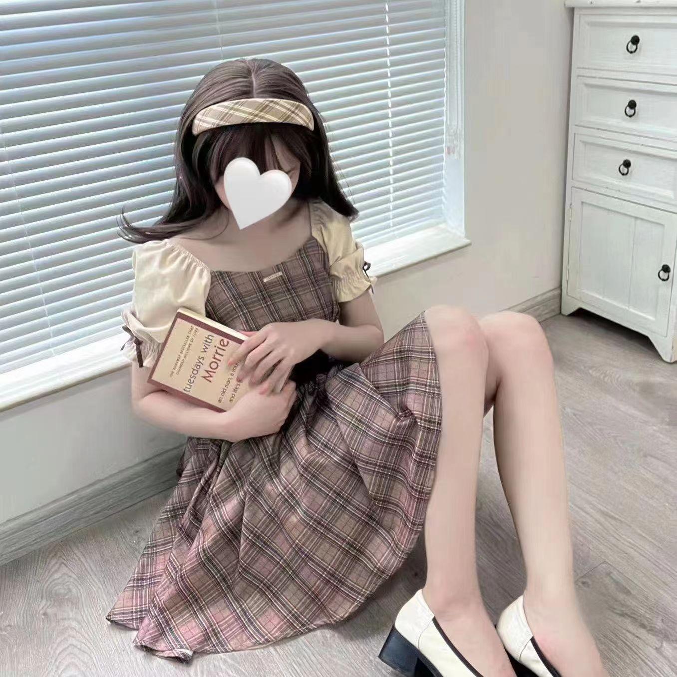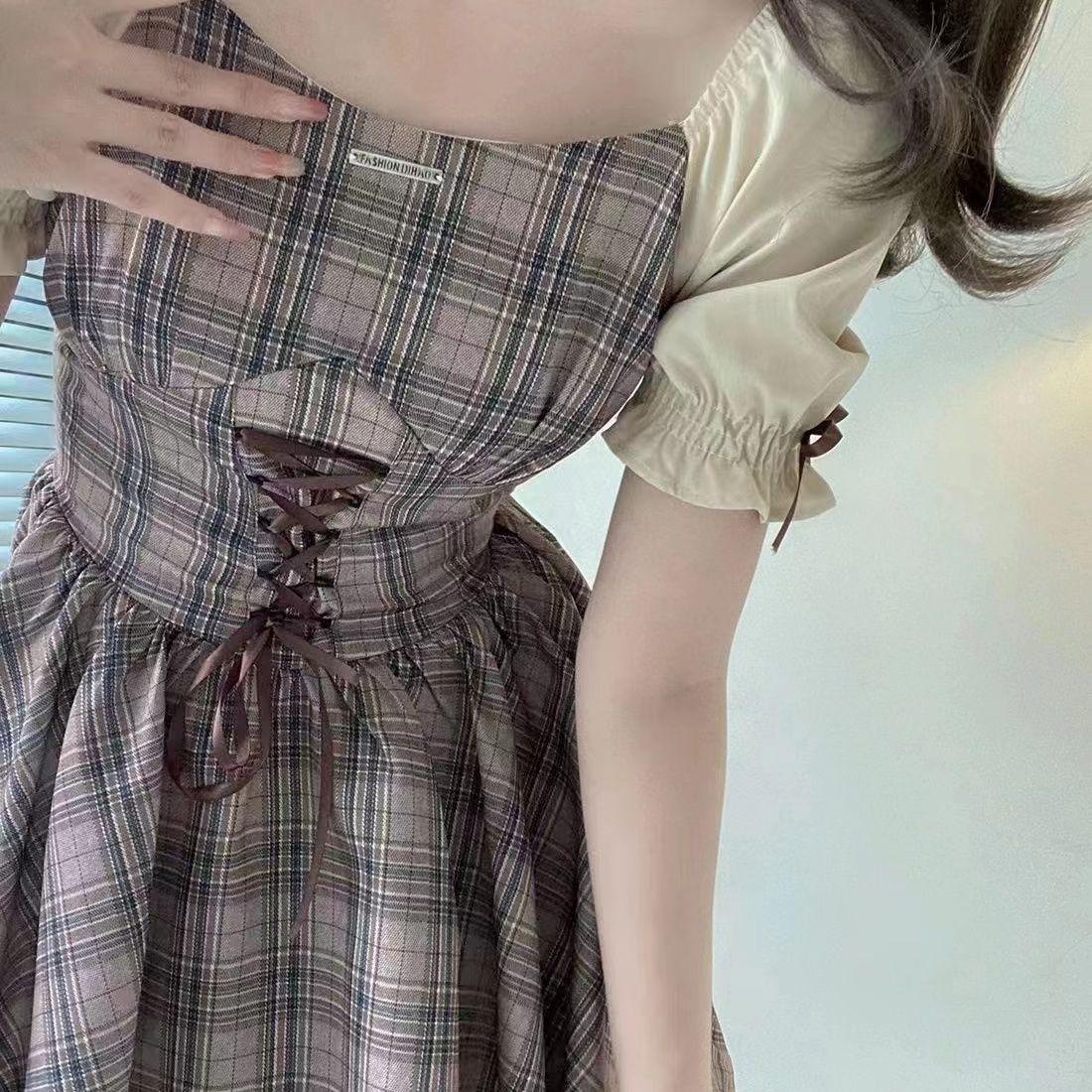 Vestido Cuadrado Fresco y Sencillo a Cuadros con Cintura Ajustada para Mujer, Nuevo Vestido Corto Ajustado de Cintura Alta Estilo Universitario Dulce para Verano
