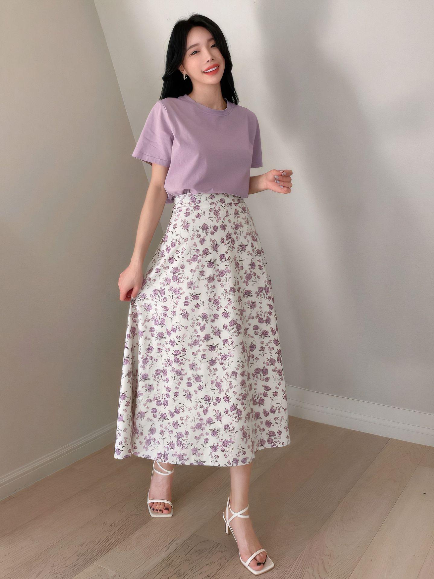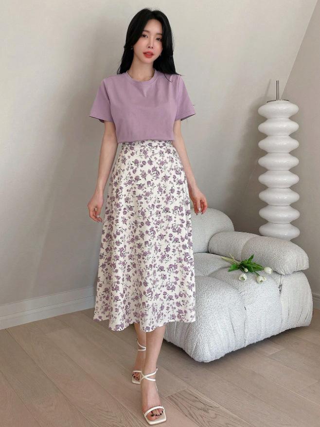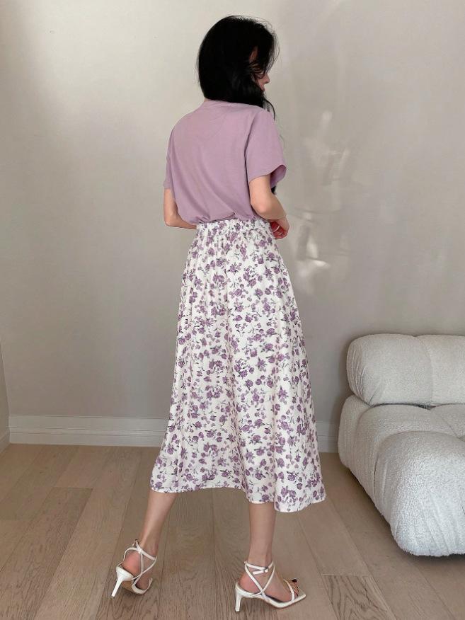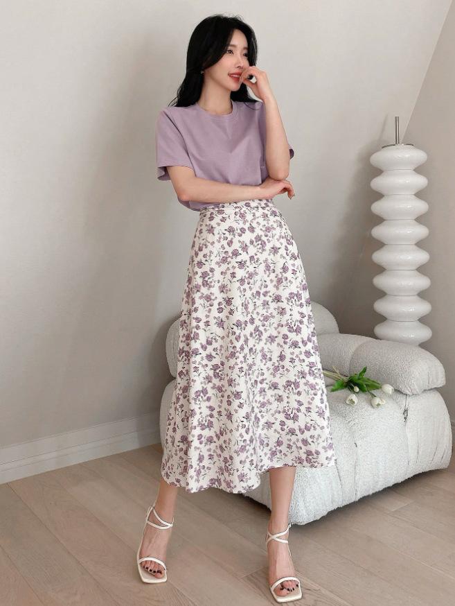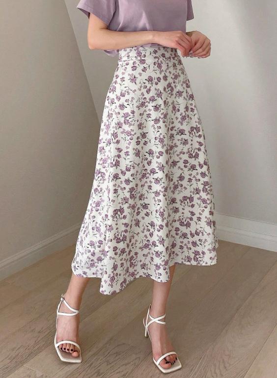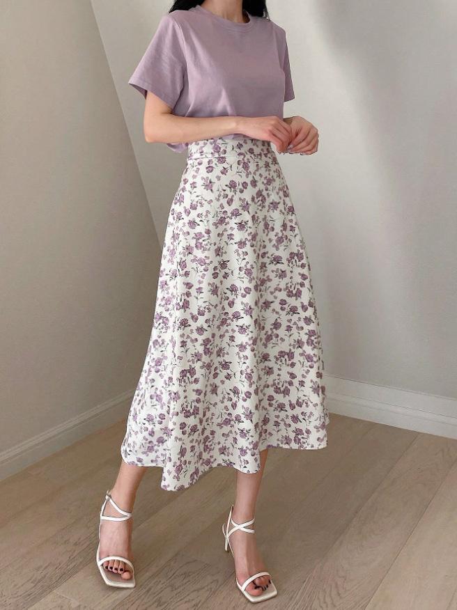Falda Midi de Verano para Mujer Estilo Coreano Petite 2025 Francés de Alta Gama Floral Diseño Personalizado Estilo para Ir al Trabajo Corte A