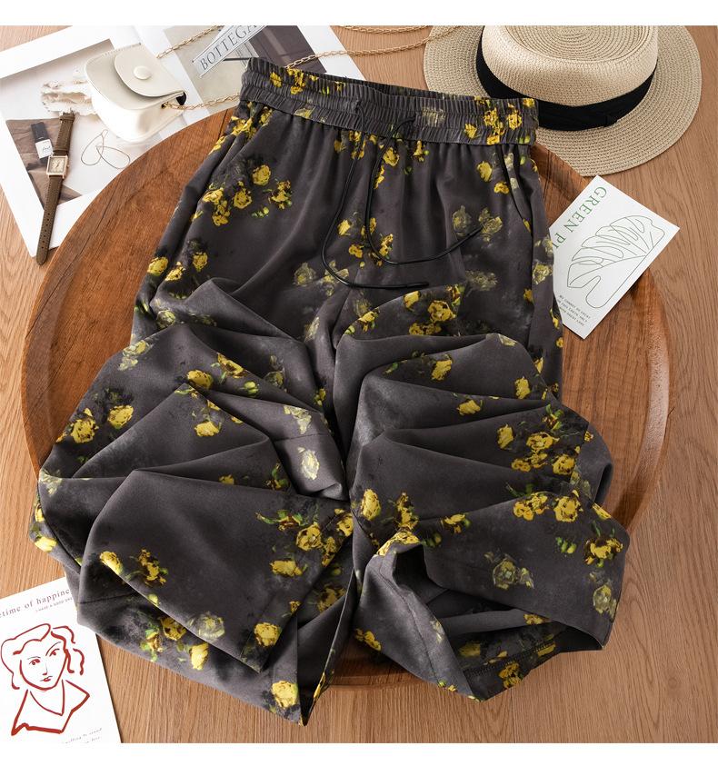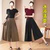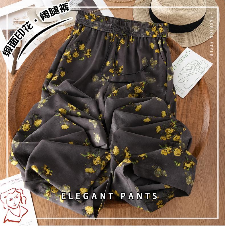 Pantalones anchos de talle alto drapeados personalizados para mujer, Verano 2025 Nuevo pantalón de pierna recta texturizado fino de seda helada, Versátil y elegante