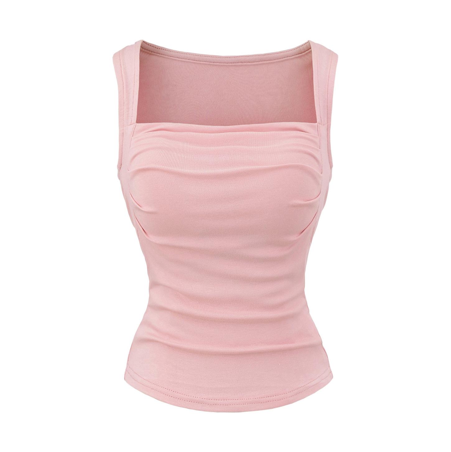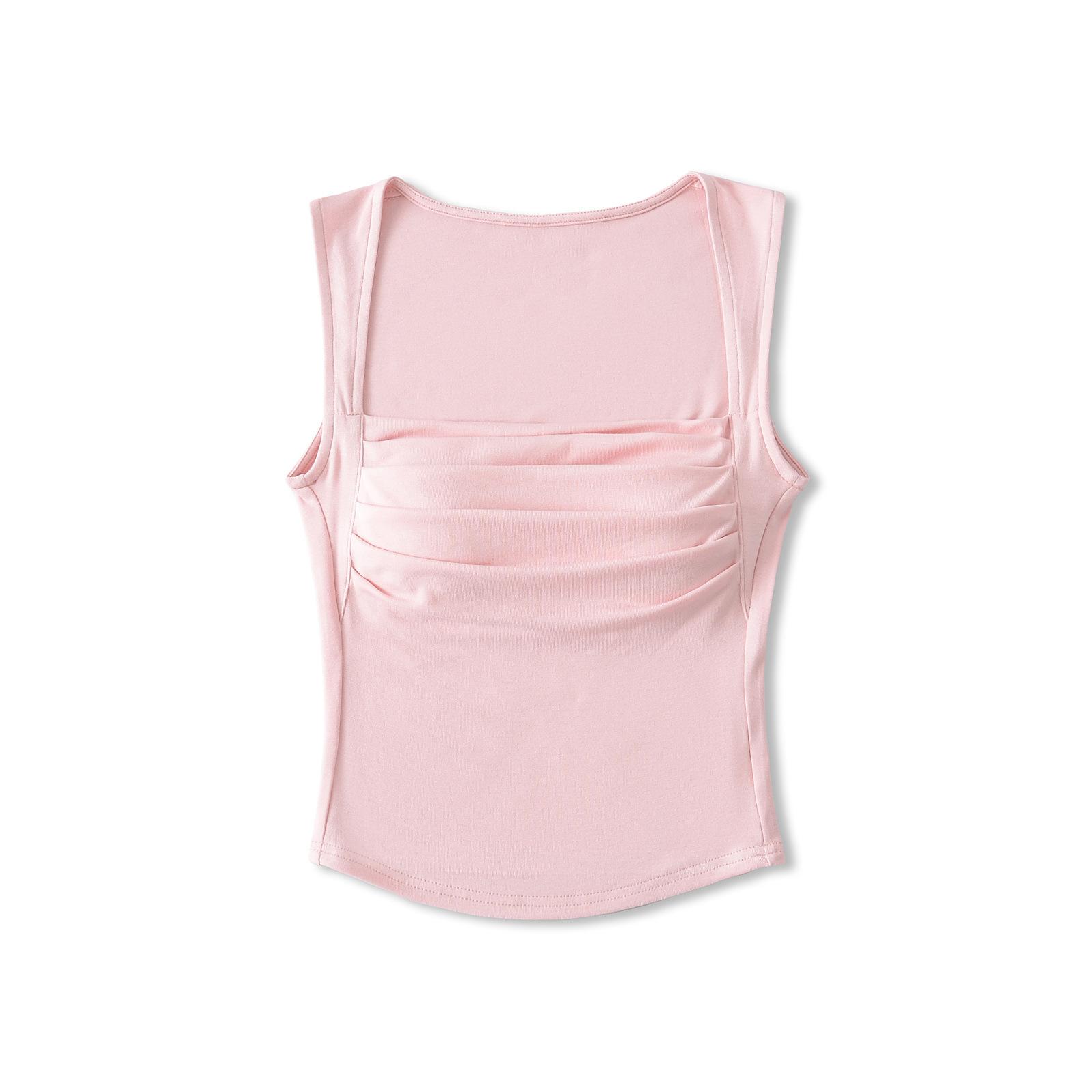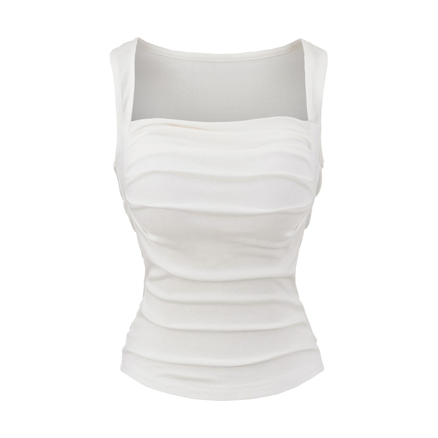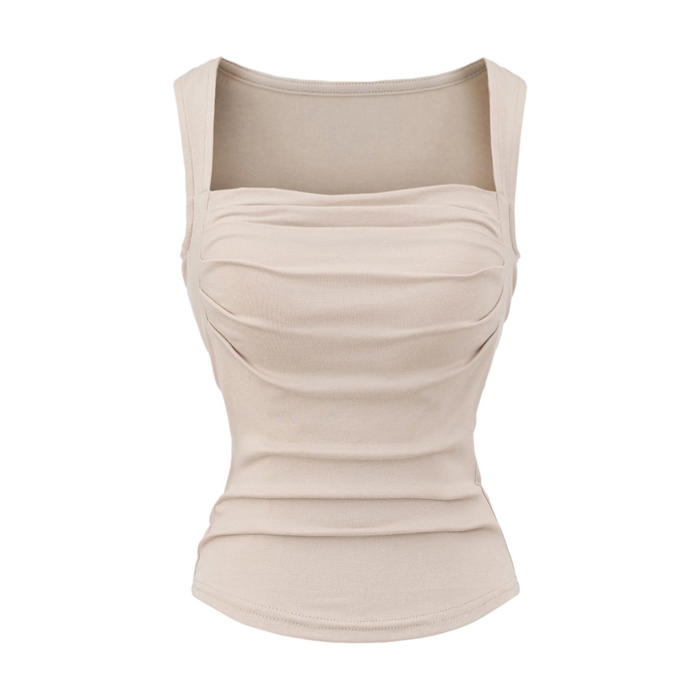 Chaleco de algodón plisado con tirantes finos para mujer, sin mangas, con almohadilla para el pecho, ropa interior exterior ajustada y sexy con espalda descubierta