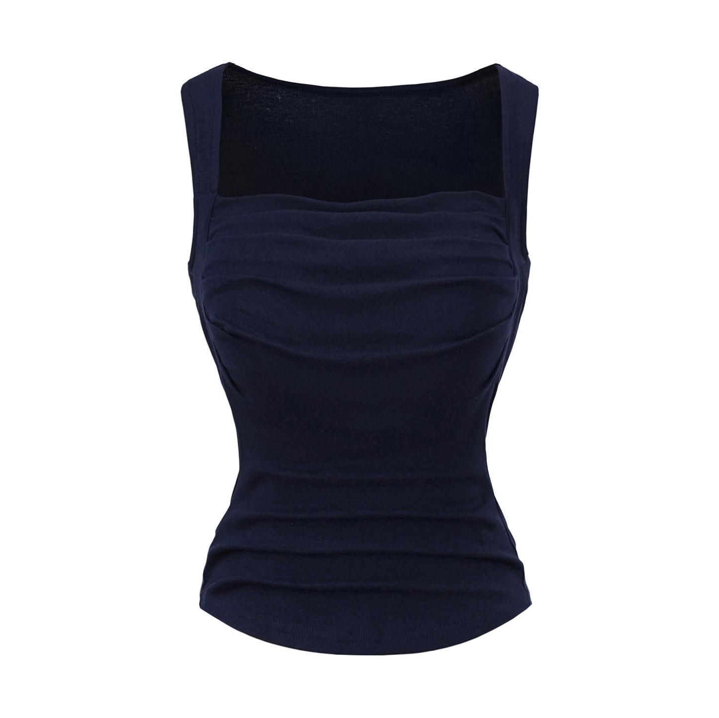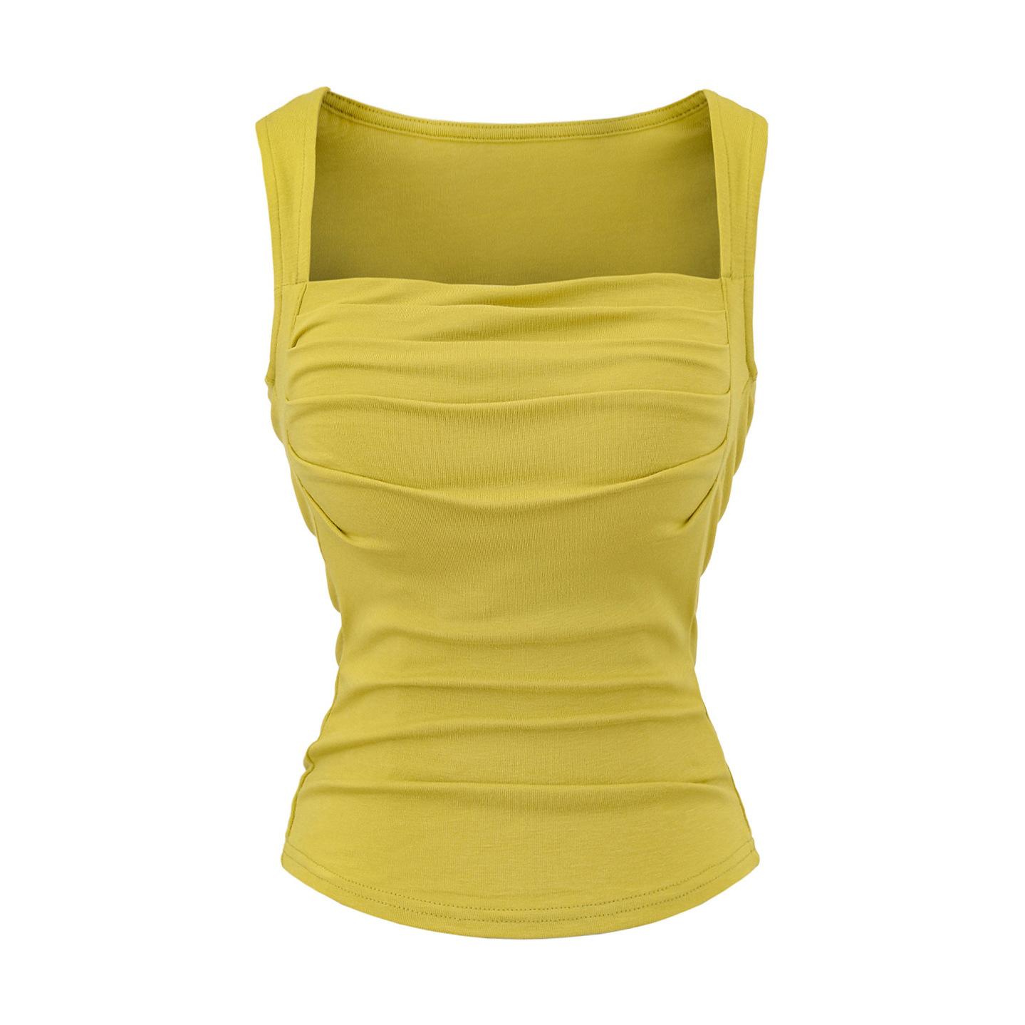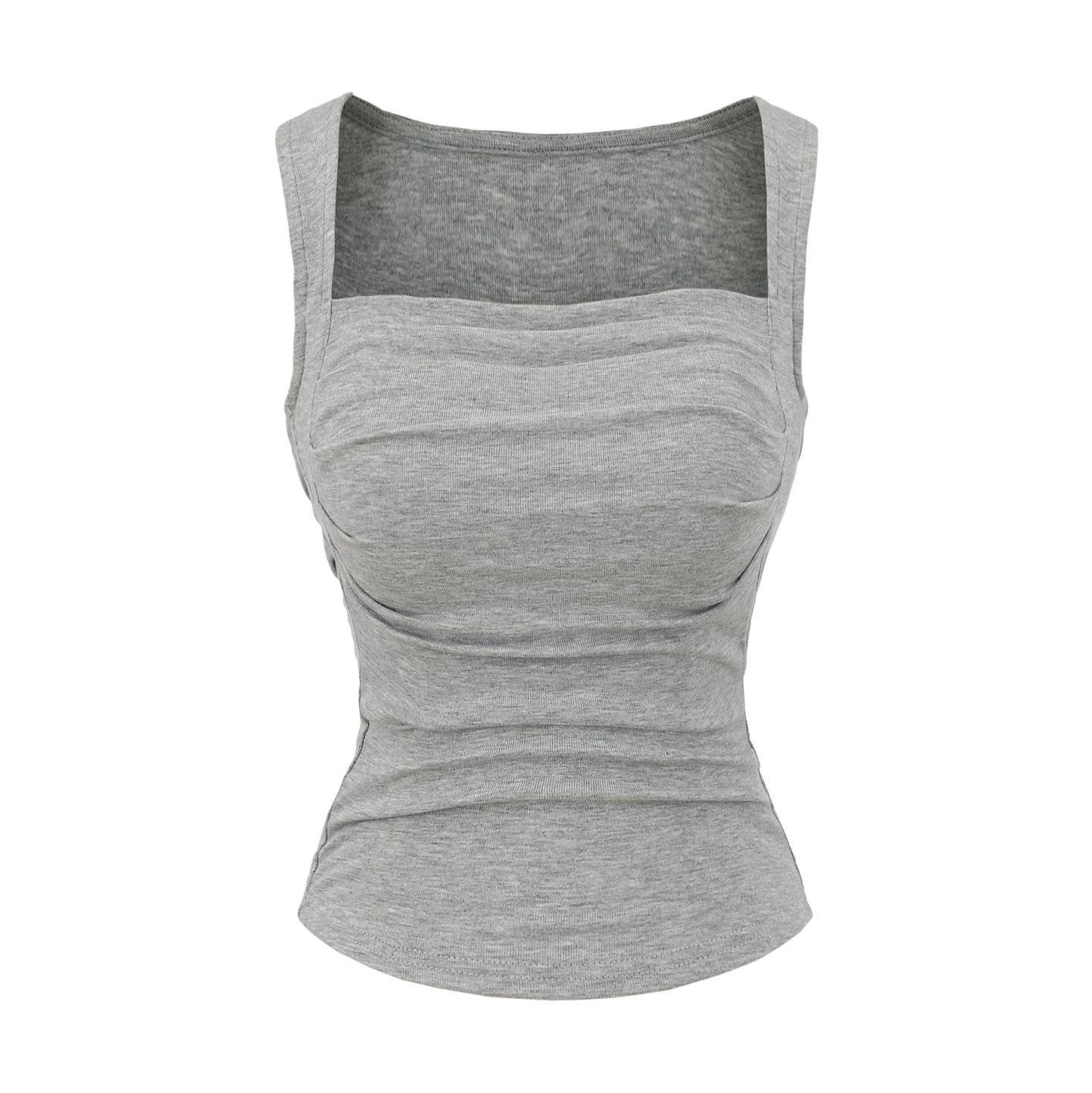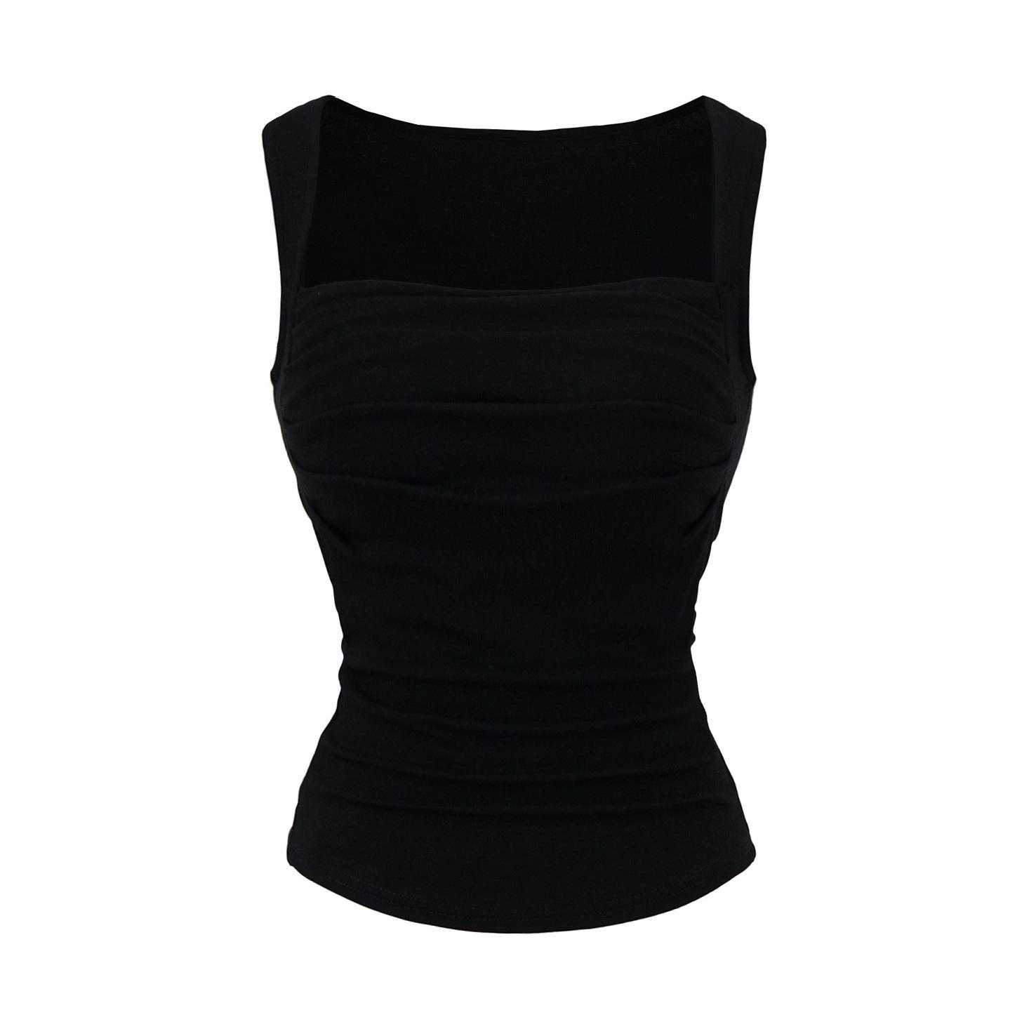 Chaleco de algodón plisado con tirantes finos para mujer, sin mangas, con almohadilla para el pecho, ropa interior exterior ajustada y sexy con espalda descubierta