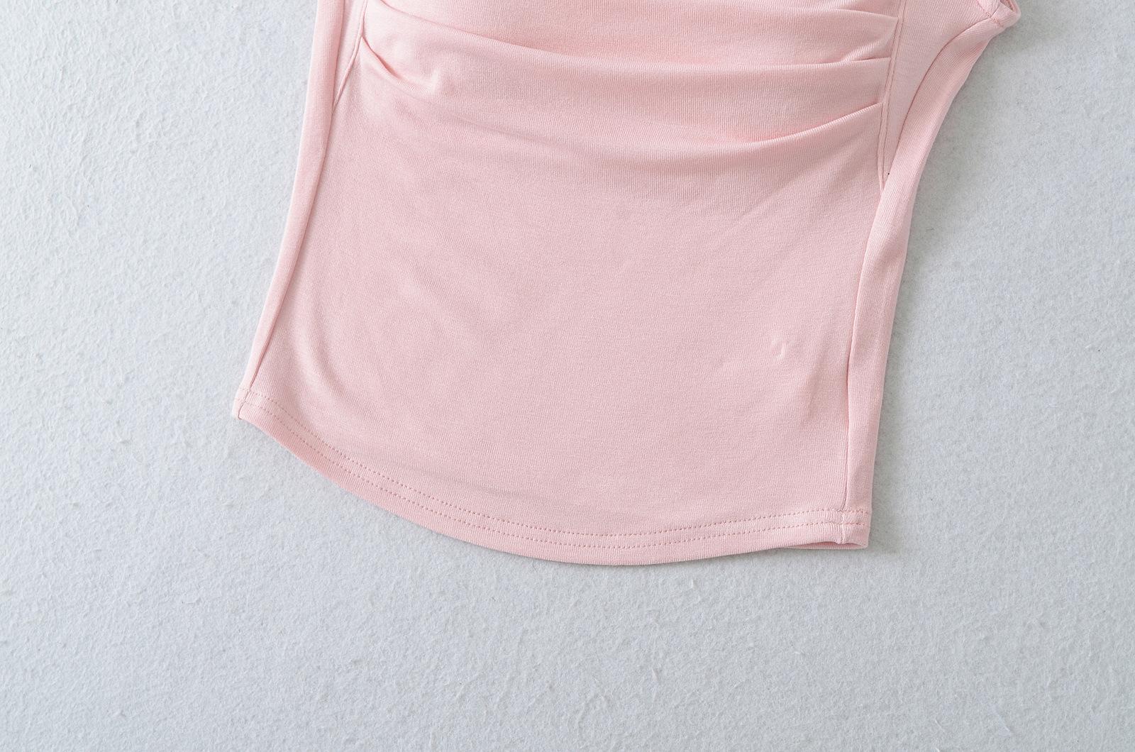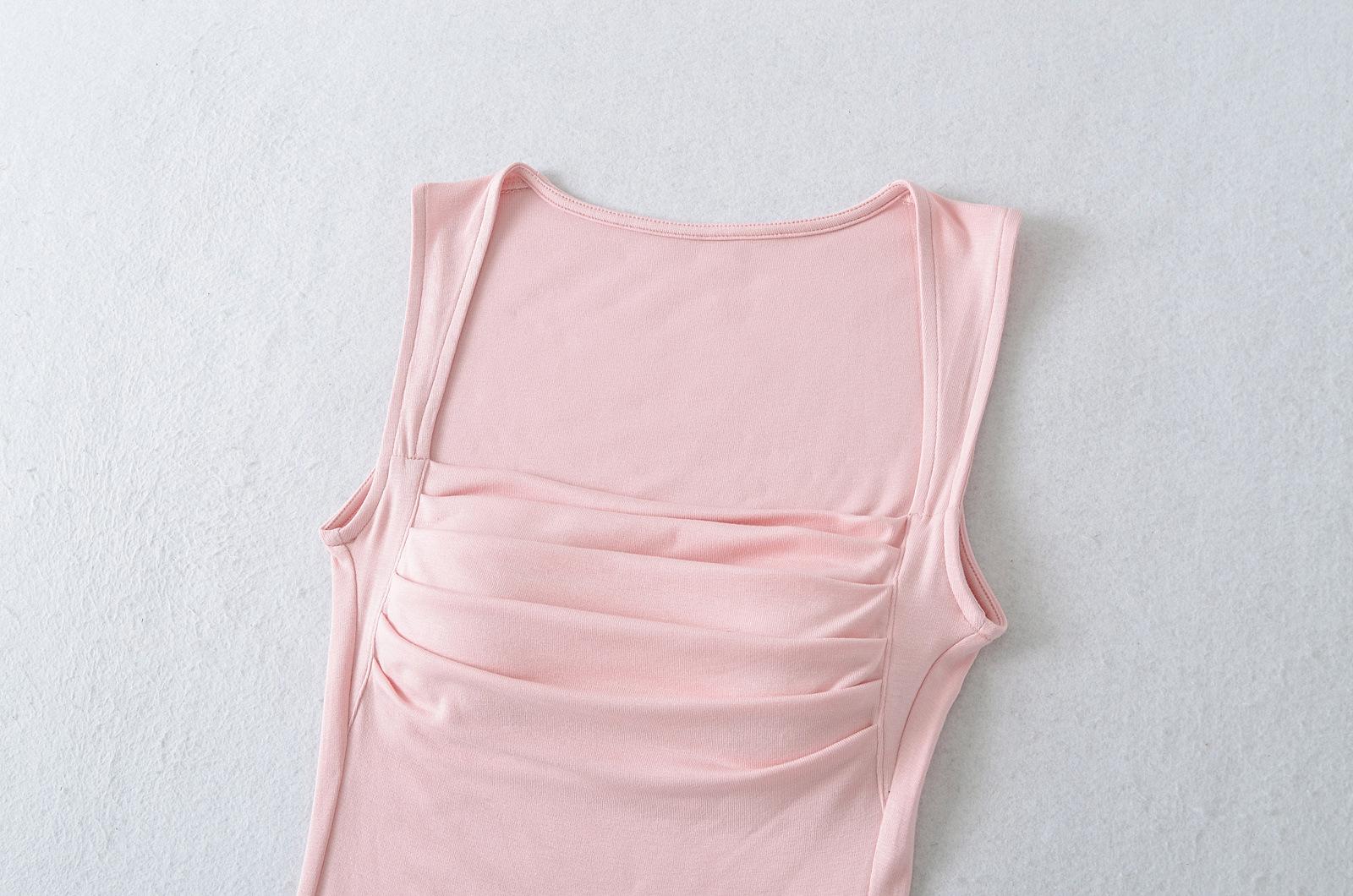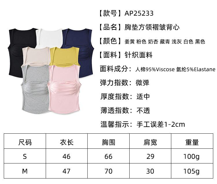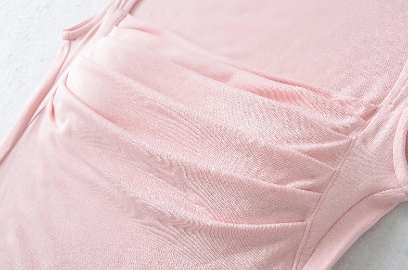 Chaleco de algodón plisado con tirantes finos para mujer, sin mangas, con almohadilla para el pecho, ropa interior exterior ajustada y sexy con espalda descubierta