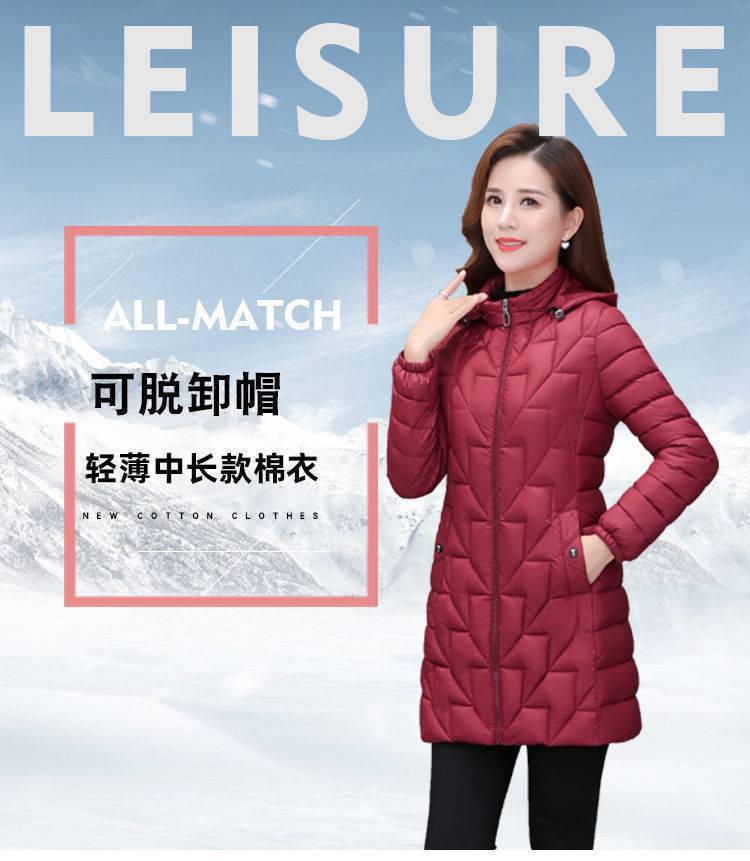 Chaqueta de Algodón Acolchada de Invierno para Mujer, Largo Medio, Chaqueta Acolchada de Algodón Ultraligera para Madre de Mediana Edad, Chaqueta Acolchada de Plumón Ligera, Chaqueta de Invierno Ultradelgada
