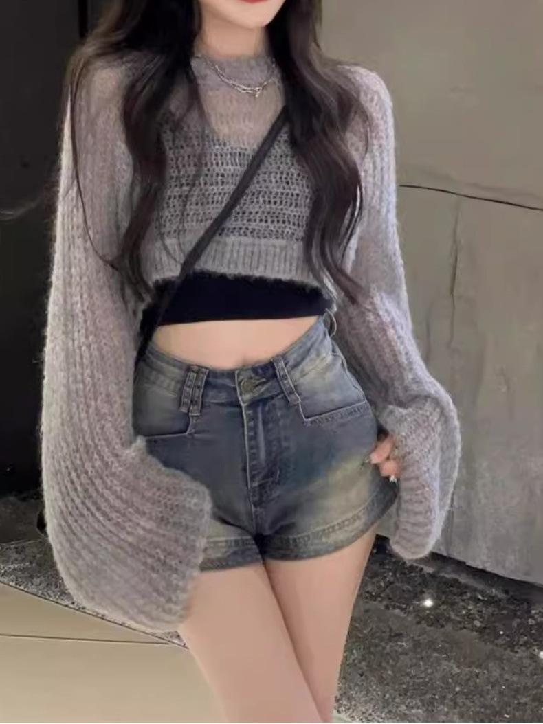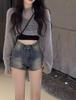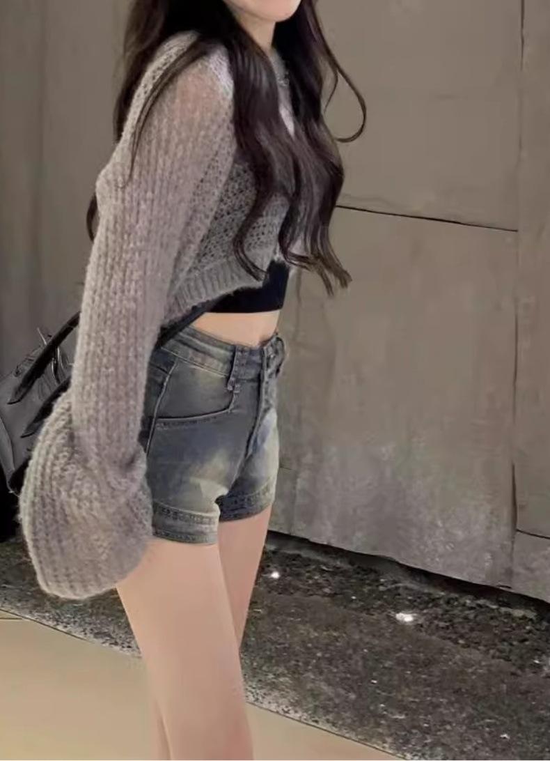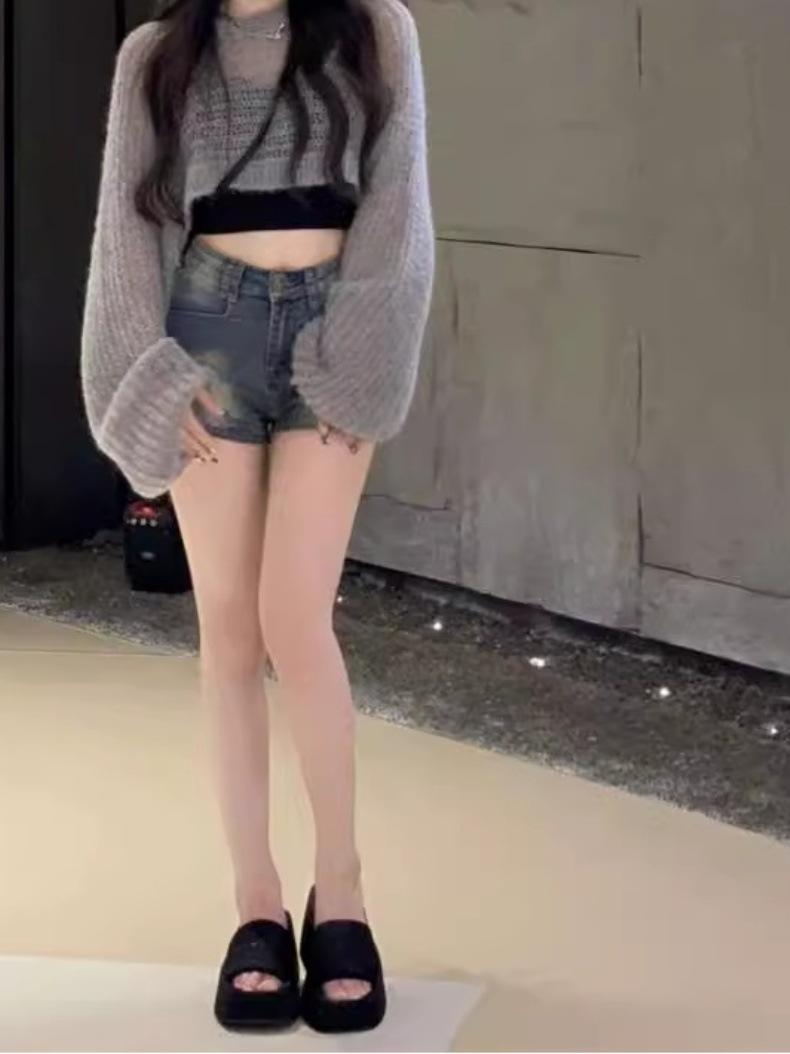 Shorts de mezclilla de tiro alto ajustados Millennium hot girl para mujer, verano delgados, pequeños adelgazantes, corte A, tipo vaina, talla grande, pantalones cortos hot