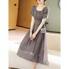 Otoño 2022 nueva ropa de mujer retro francés floral cuello cuadrado cordón encaje sexy vestido con abertura lateral