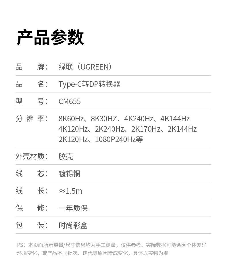 Línea verde Tipo-C a DP1.2 monitor de pantalla igual cabezal convertidor externo 4K60hz HD displaypo
