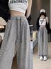 Pantalones de Pierna Ancha para Mujer 2025 Nuevo Estilo Cintura Alta Holgados Rectos Pantalones Delgados Pantalones Nueve Puntos Pantalones Casuales para Mujer Versátiles