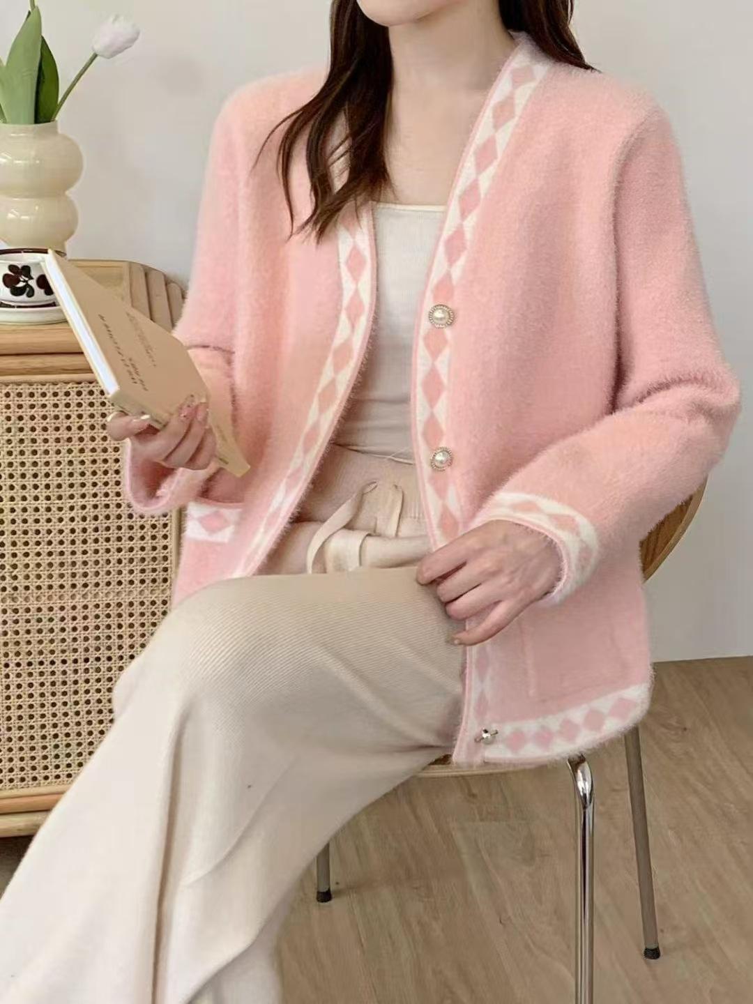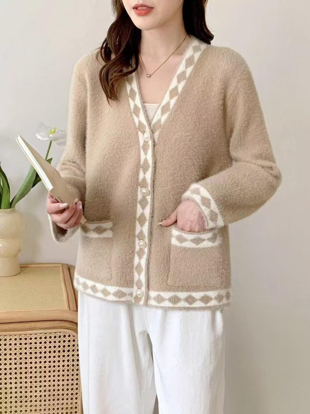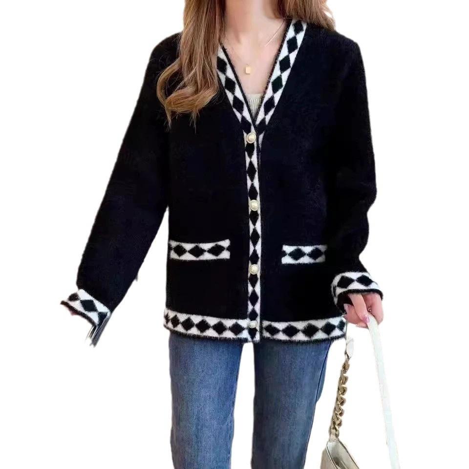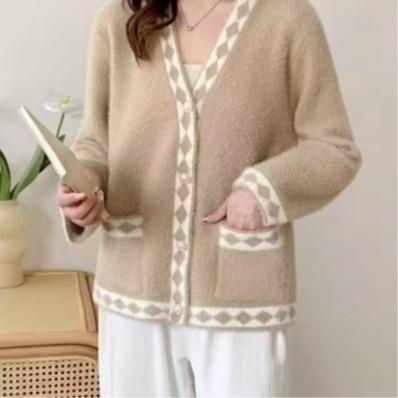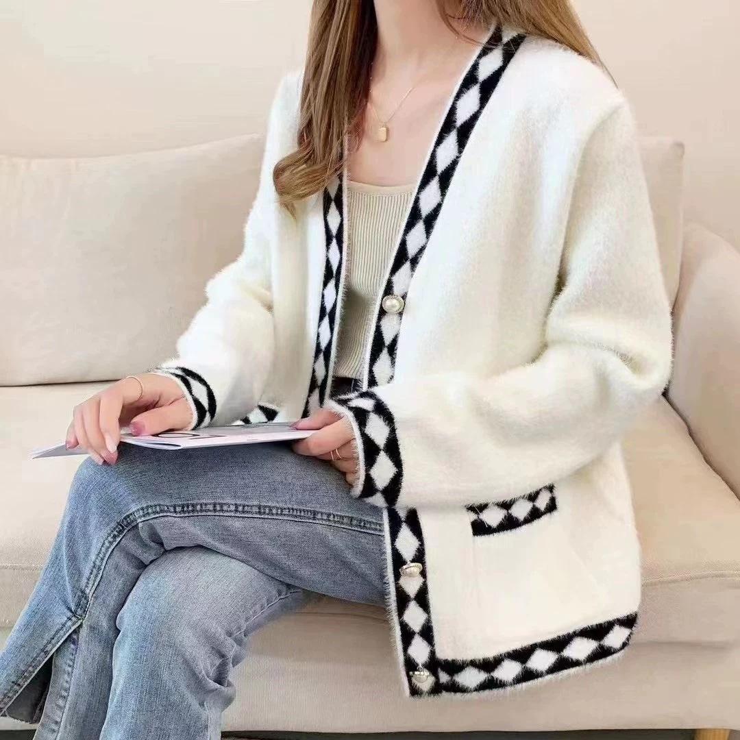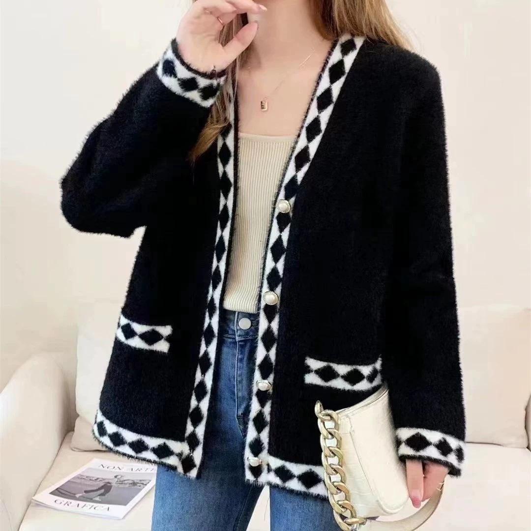 Cárdigan de punto holgado grueso 2025 Otoño e Invierno Nuevo Suéter de mujer Moderno Versátil Ropa exterior Chaqueta de terciopelo de imitación visón para mujer
