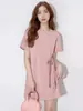 Vestido Nuevo Primavera-Verano Puro y Seductor Estilo Francés con Hombros Descubiertos, Adelgazante y Suave Rosa Menta Mambo, Súper de Hada