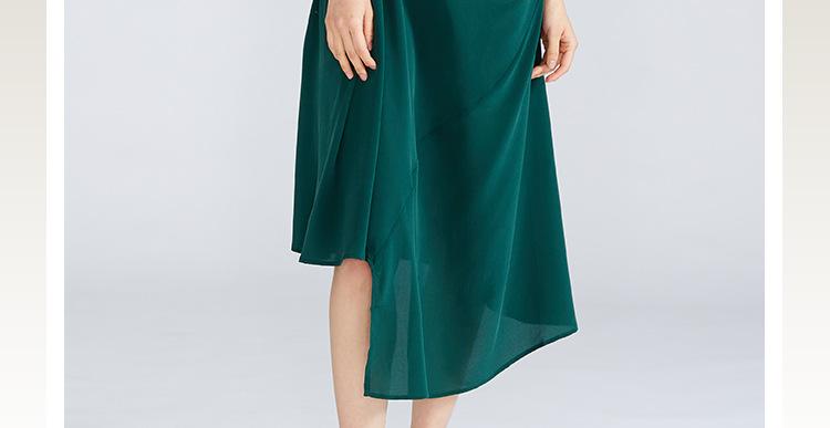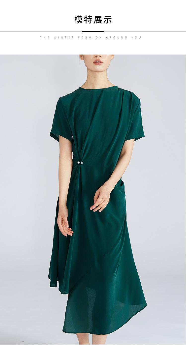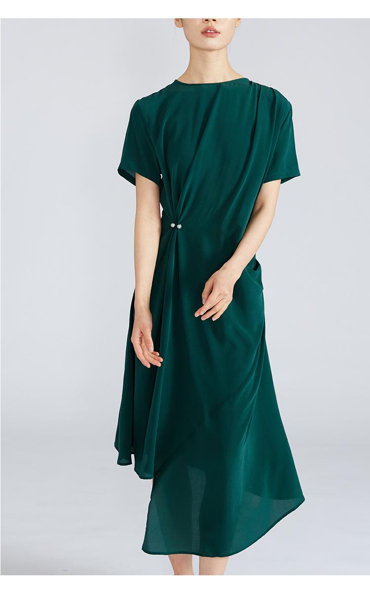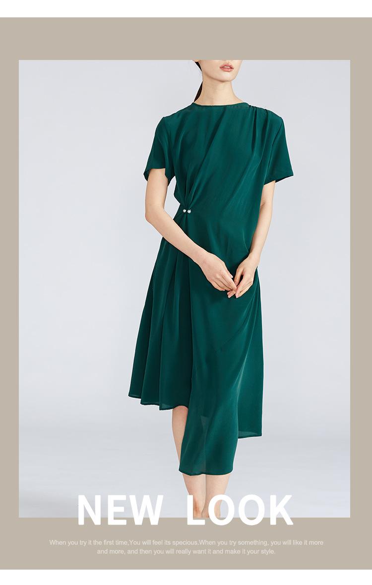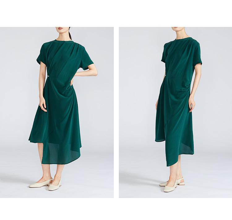 Vestido de Crepé de China con Lavado de Arena Pesado, Cintura Ajustada, Plisado, Cuello Redondo de Seda, Seda de Morera, Irregular, Elegante, Largo, Verano Nuevo