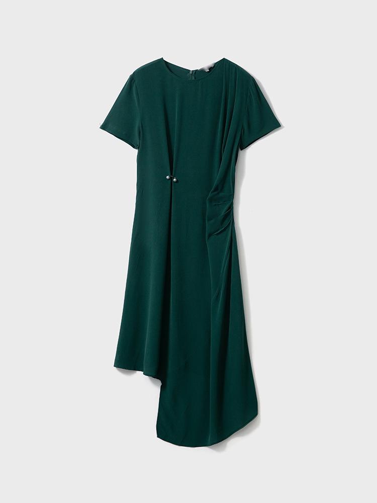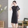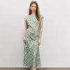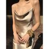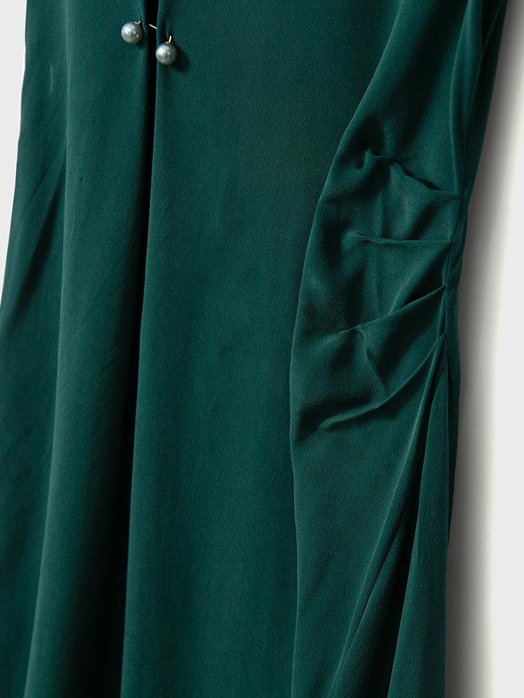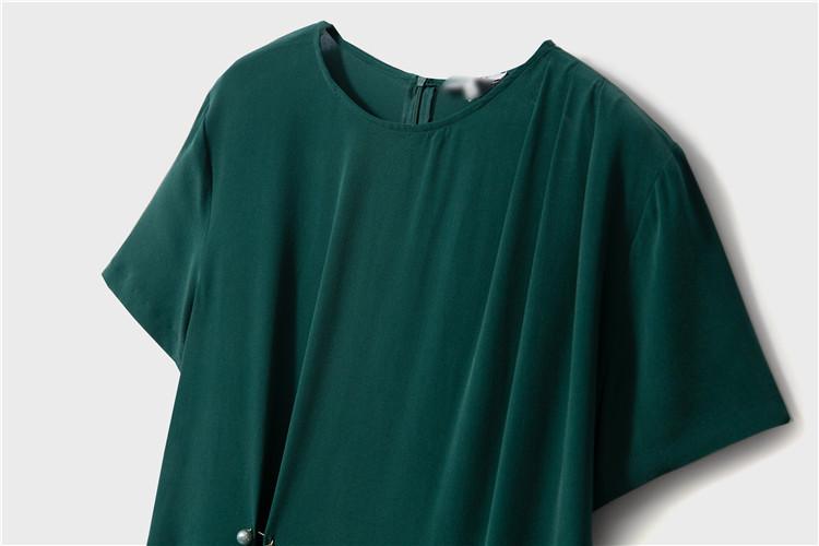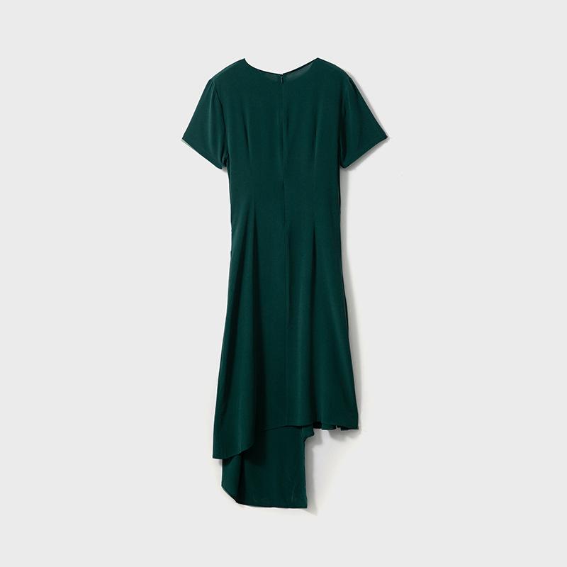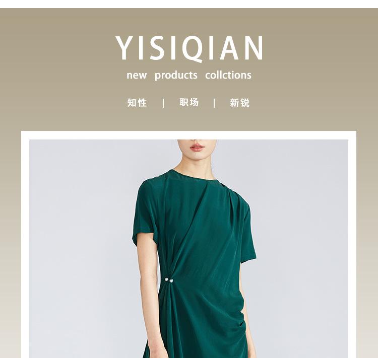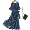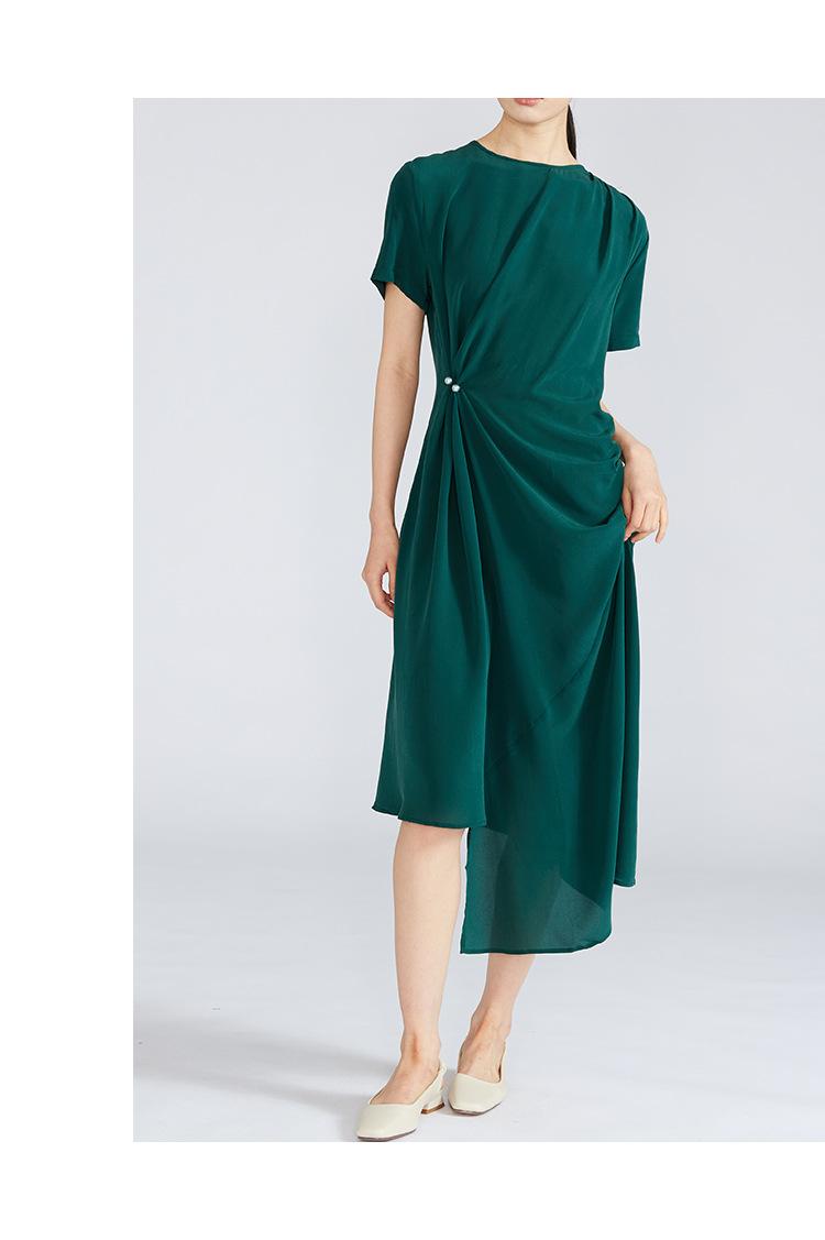 Vestido de Crepé de China con Lavado de Arena Pesado, Cintura Ajustada, Plisado, Cuello Redondo de Seda, Seda de Morera, Irregular, Elegante, Largo, Verano Nuevo