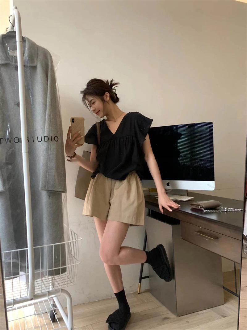 Shorts Casuales de Verano para Mujer de Algodón Puro Estilo Americano, Delgados, Adelgazantes, Holgados, para Uso al Aire Libre, Pantalones Cortos A-Line Rectos de Pierna Ancha