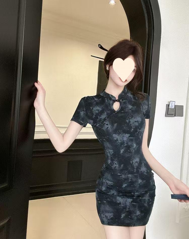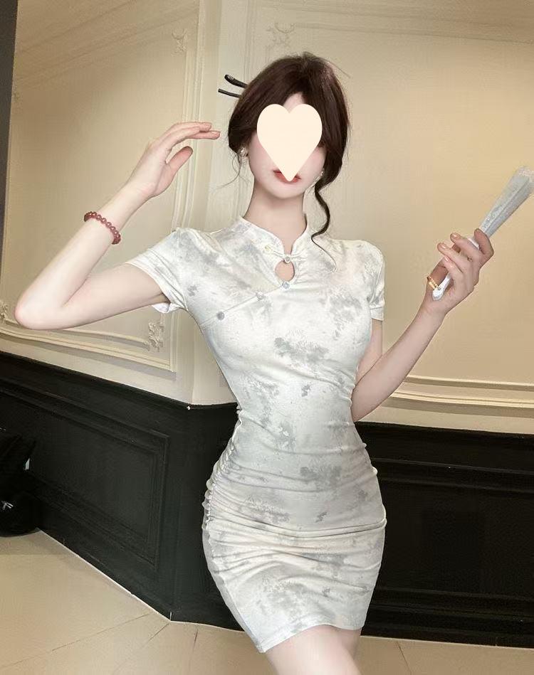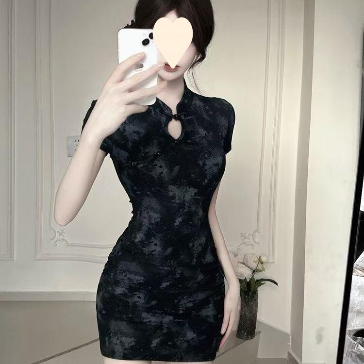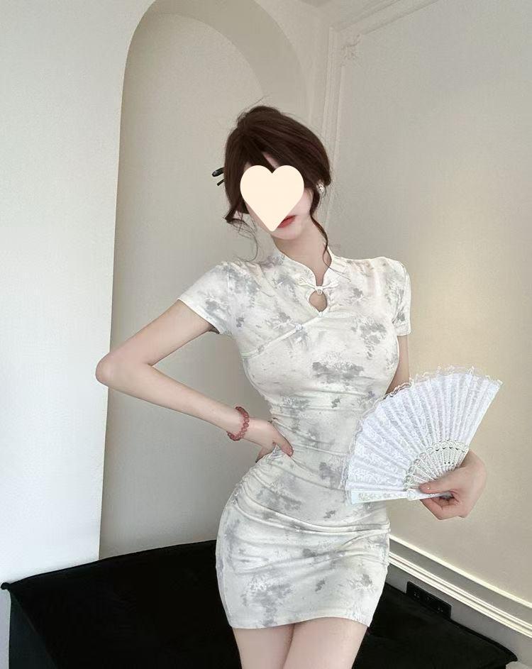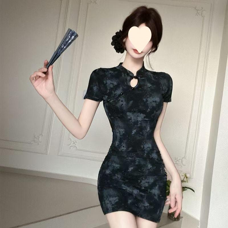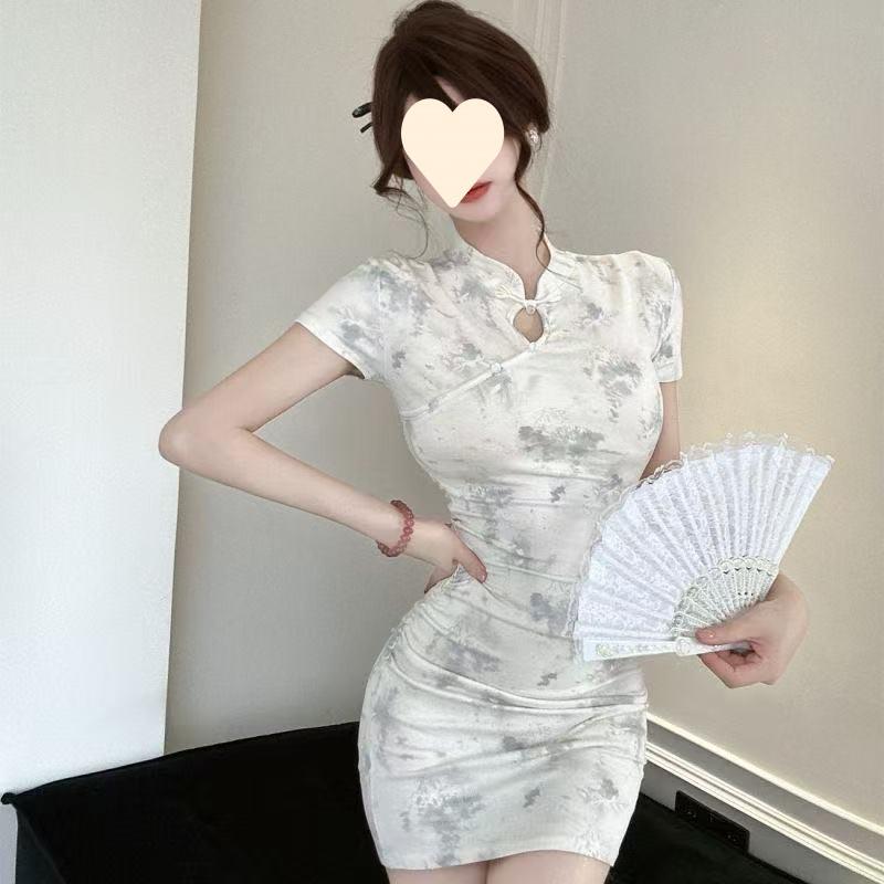 Verano 2025 Nuevo Nuevo Estilo Chino Estilo Nacional Joven Cheongsam Estampado Modificado Vestido Corto Ajustado a la Cadera