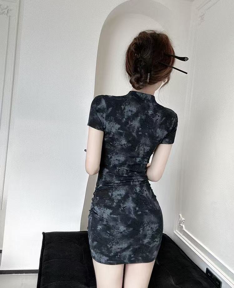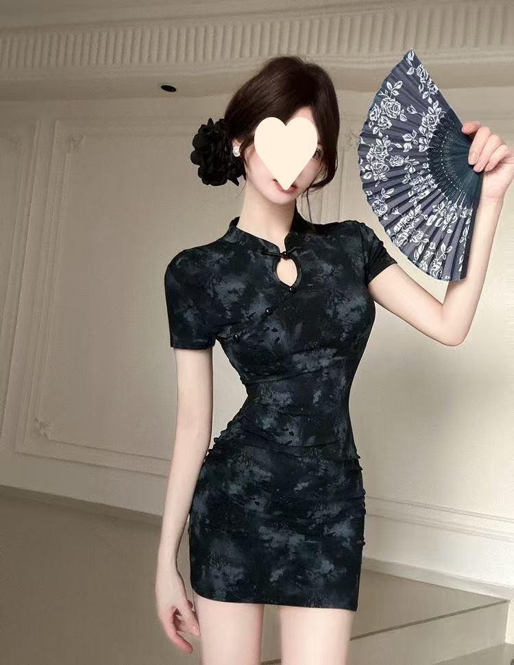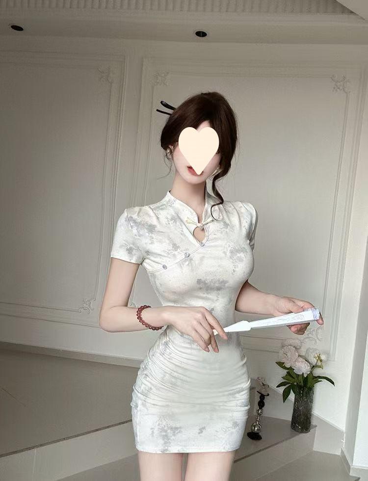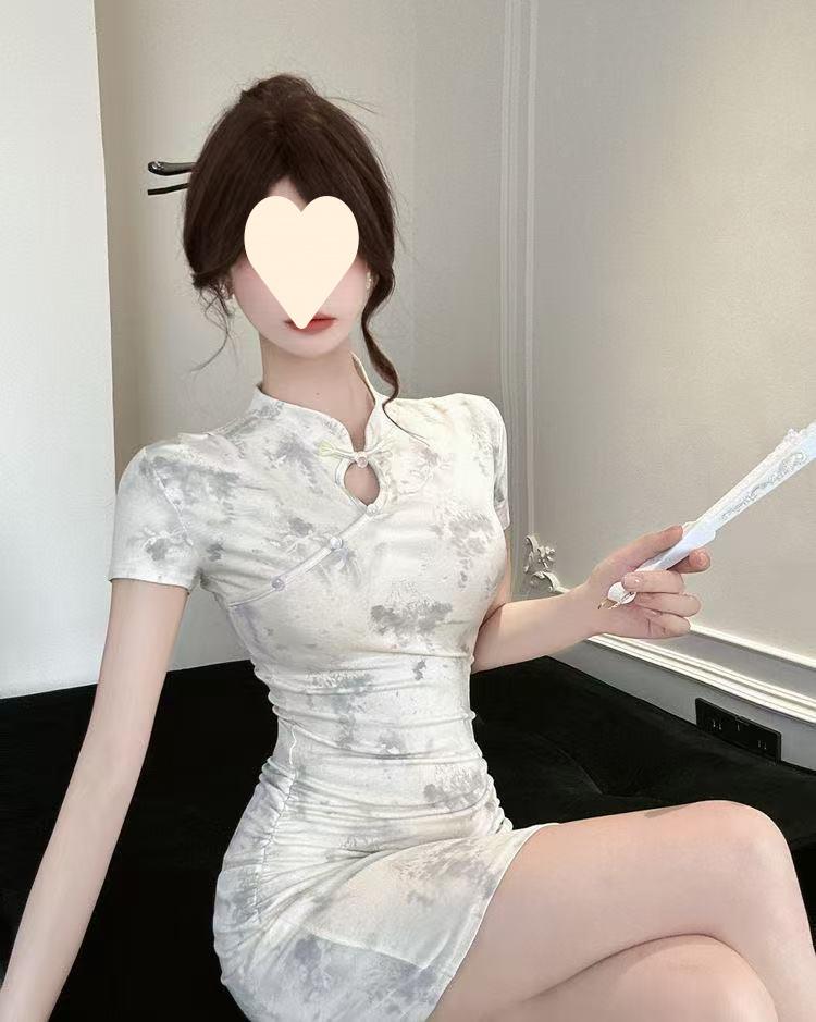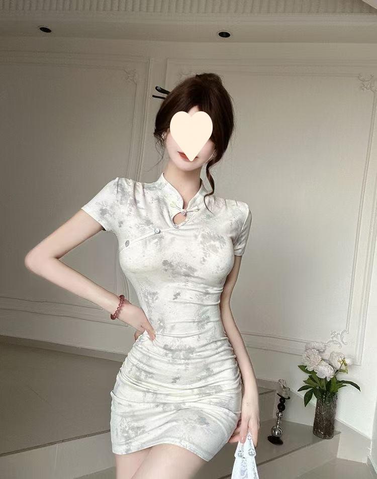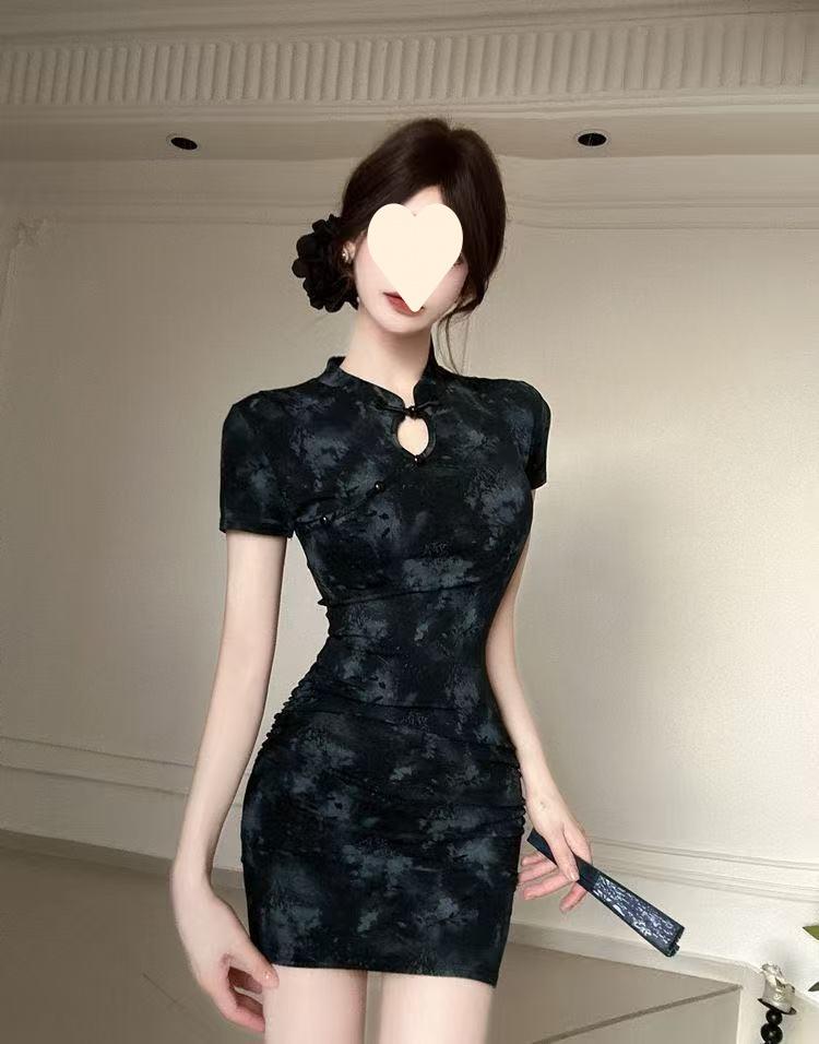 Verano 2025 Nuevo Nuevo Estilo Chino Estilo Nacional Joven Cheongsam Estampado Modificado Vestido Corto Ajustado a la Cadera