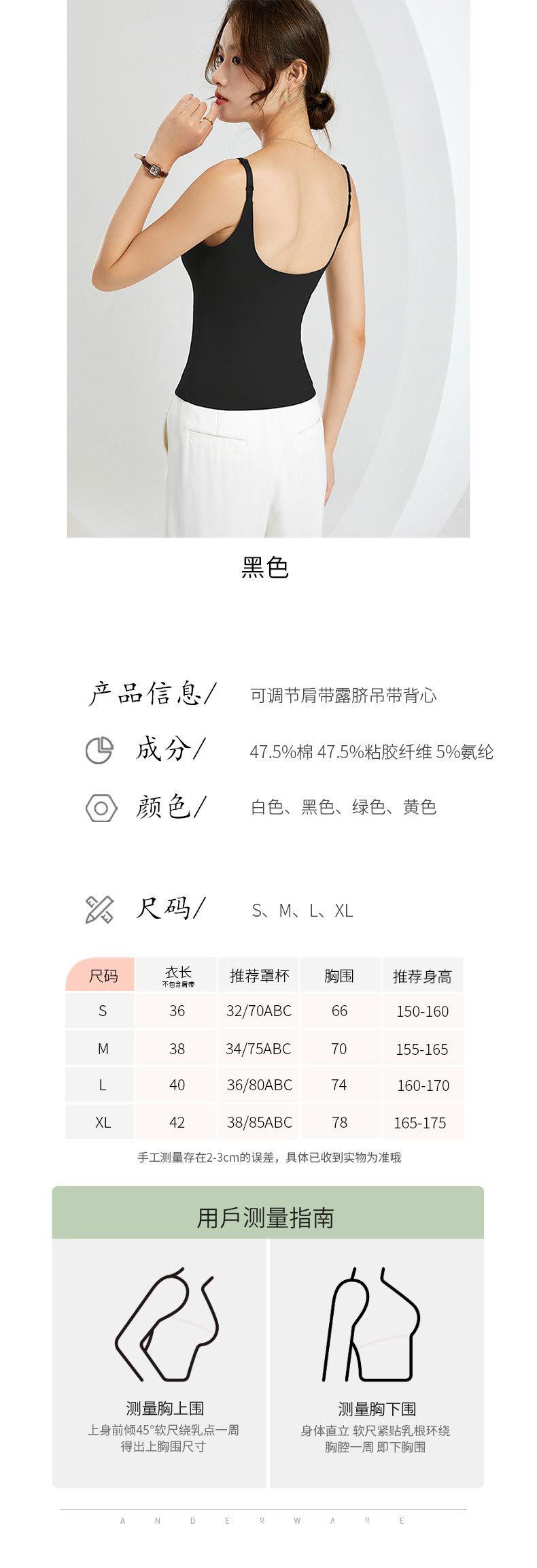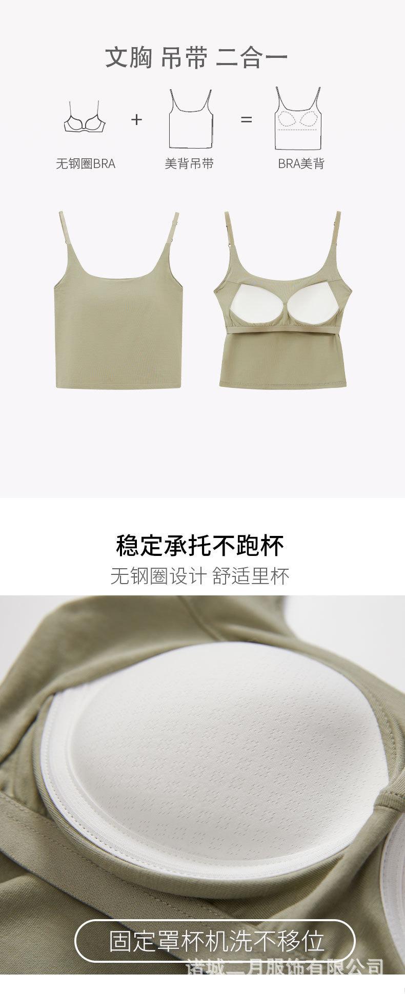 Primavera y Verano Nuevo Chaleco de Tirantes Ajustables para Mujer con Copa de Sujetador Integrada Push-up Espalda Hermosa Sling Base Delgado