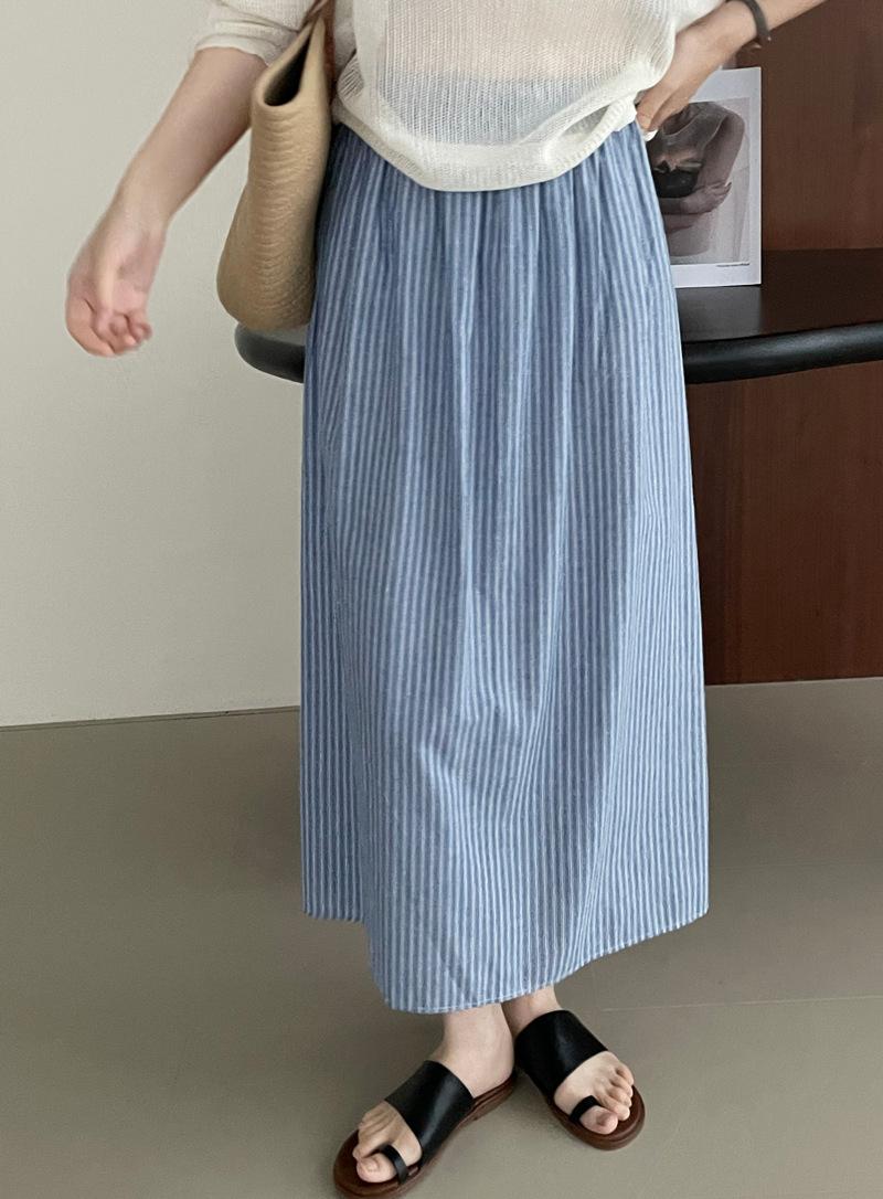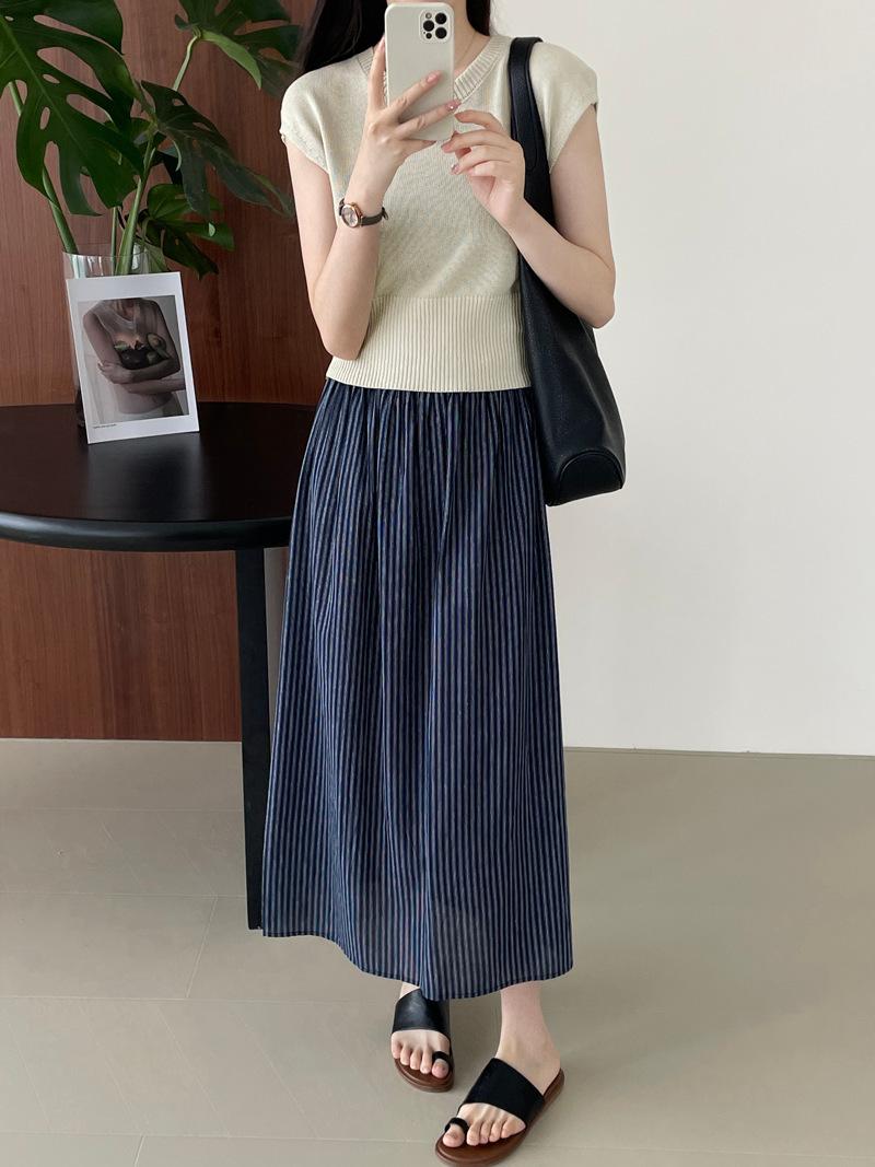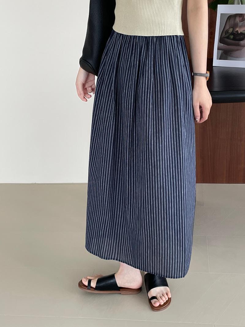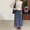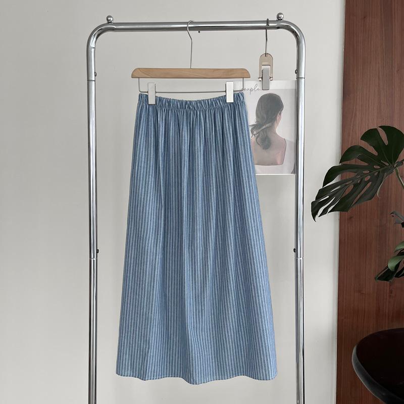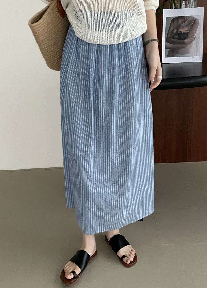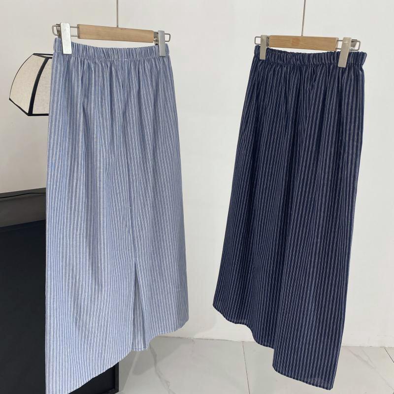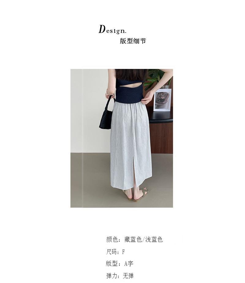 Falda Midi Retro Francesa a Rayas Abertura Mujer Verano 2025 Cintura Elástica Cintura Alta Adelgazante Recta Línea A