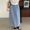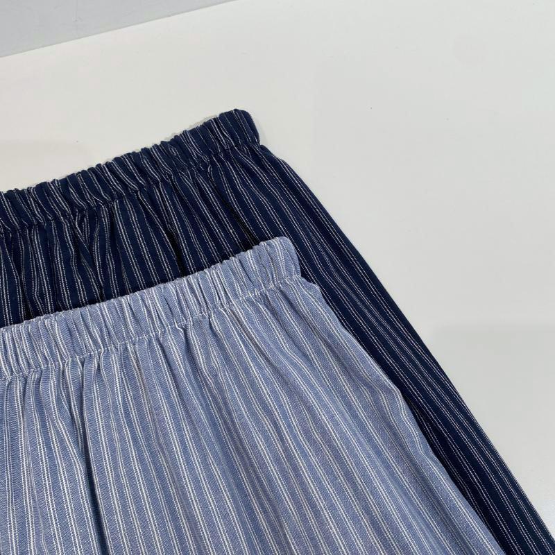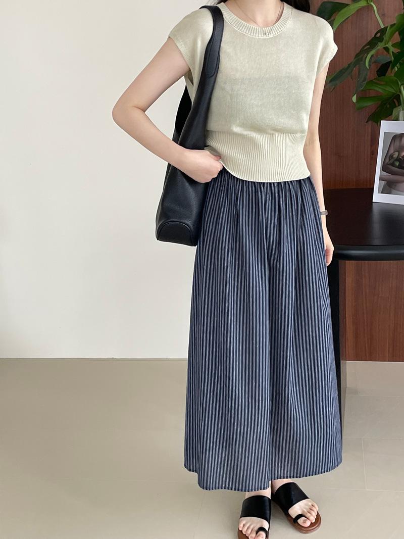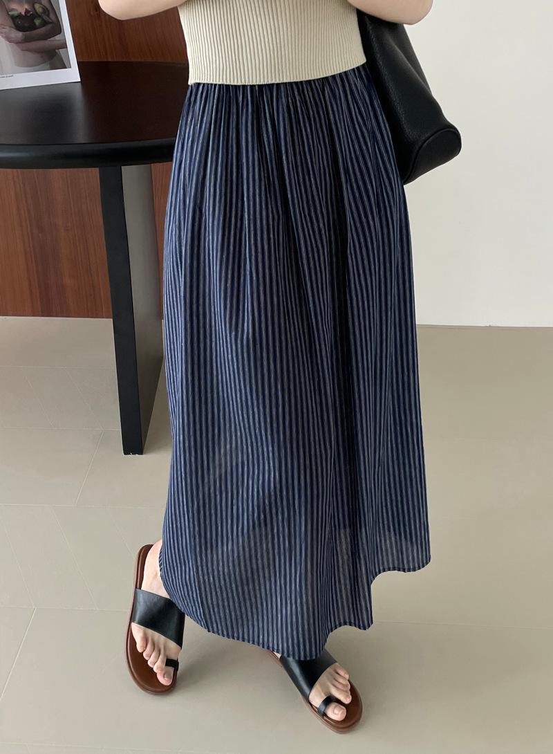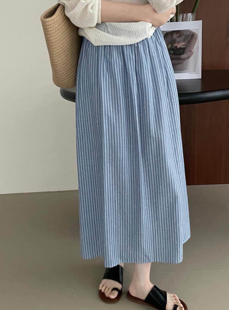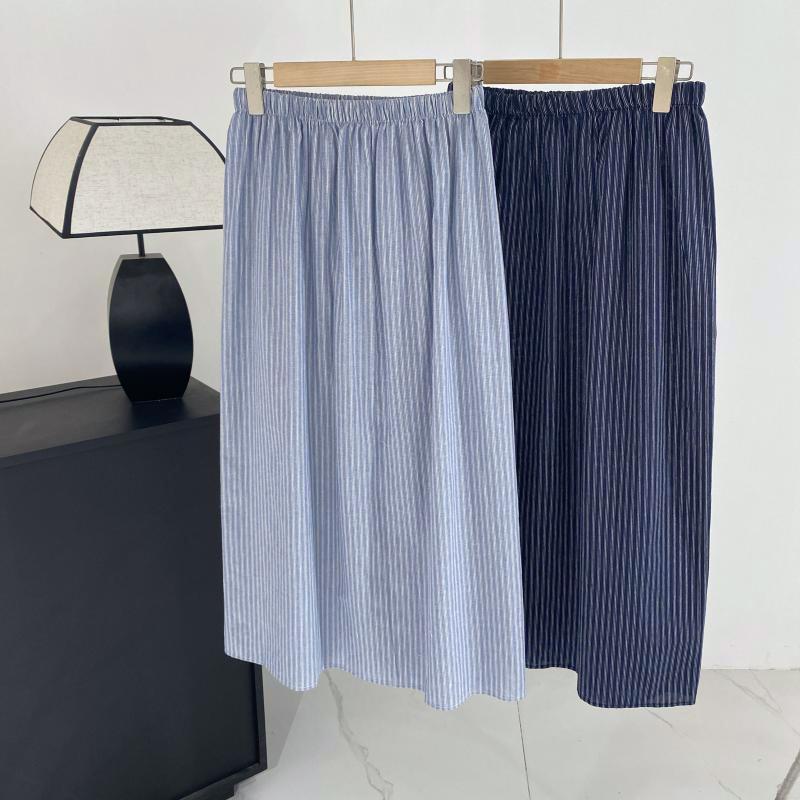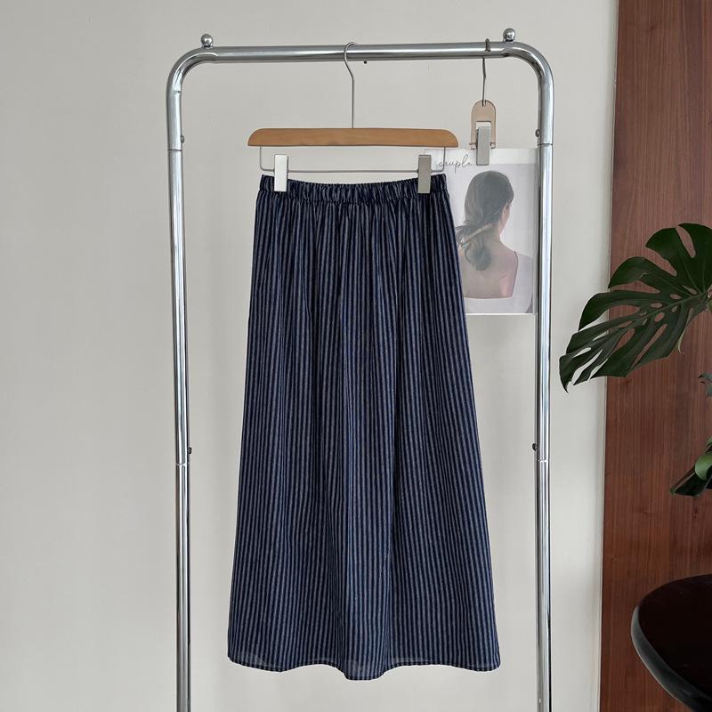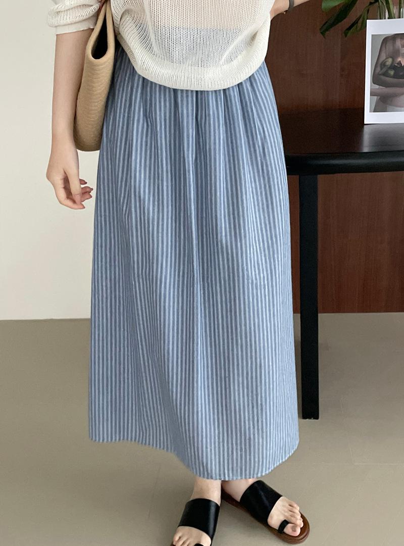 Falda Midi Retro Francesa a Rayas Abertura Mujer Verano 2025 Cintura Elástica Cintura Alta Adelgazante Recta Línea A