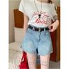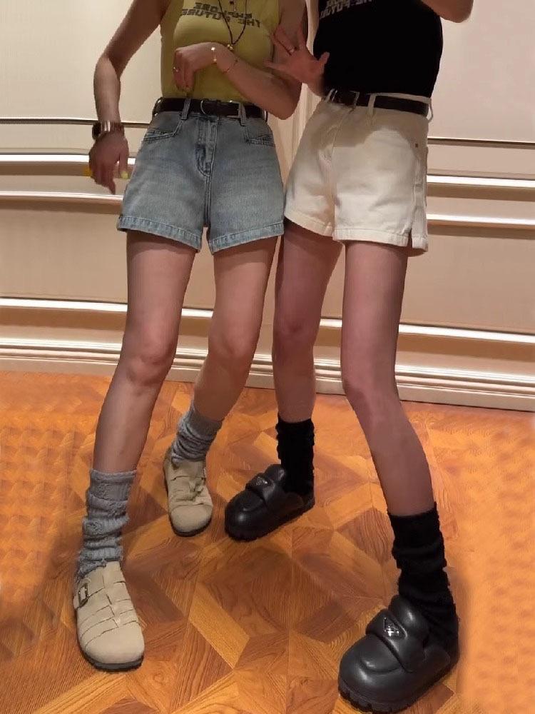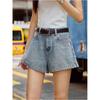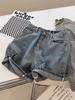 Shorts de mezclilla elásticos de talle alto con abertura para mujer 2025 verano talla grande mm adelgazantes petite pierna ancha línea A pantalones cortos