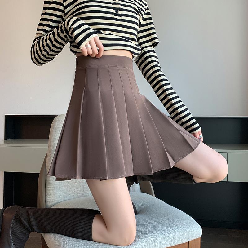 Falda Plisada Caqui Falda de Mujer Falda 2025 Nueva Cintura Alta Adelgazante Pequeña JK Estudiante Falda Línea A