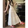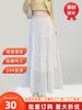 Falda de pastel blanca para mujer, primavera y verano 2025, nueva falda larga de encaje adelgazante de cintura alta, falda de paraguas en forma de A