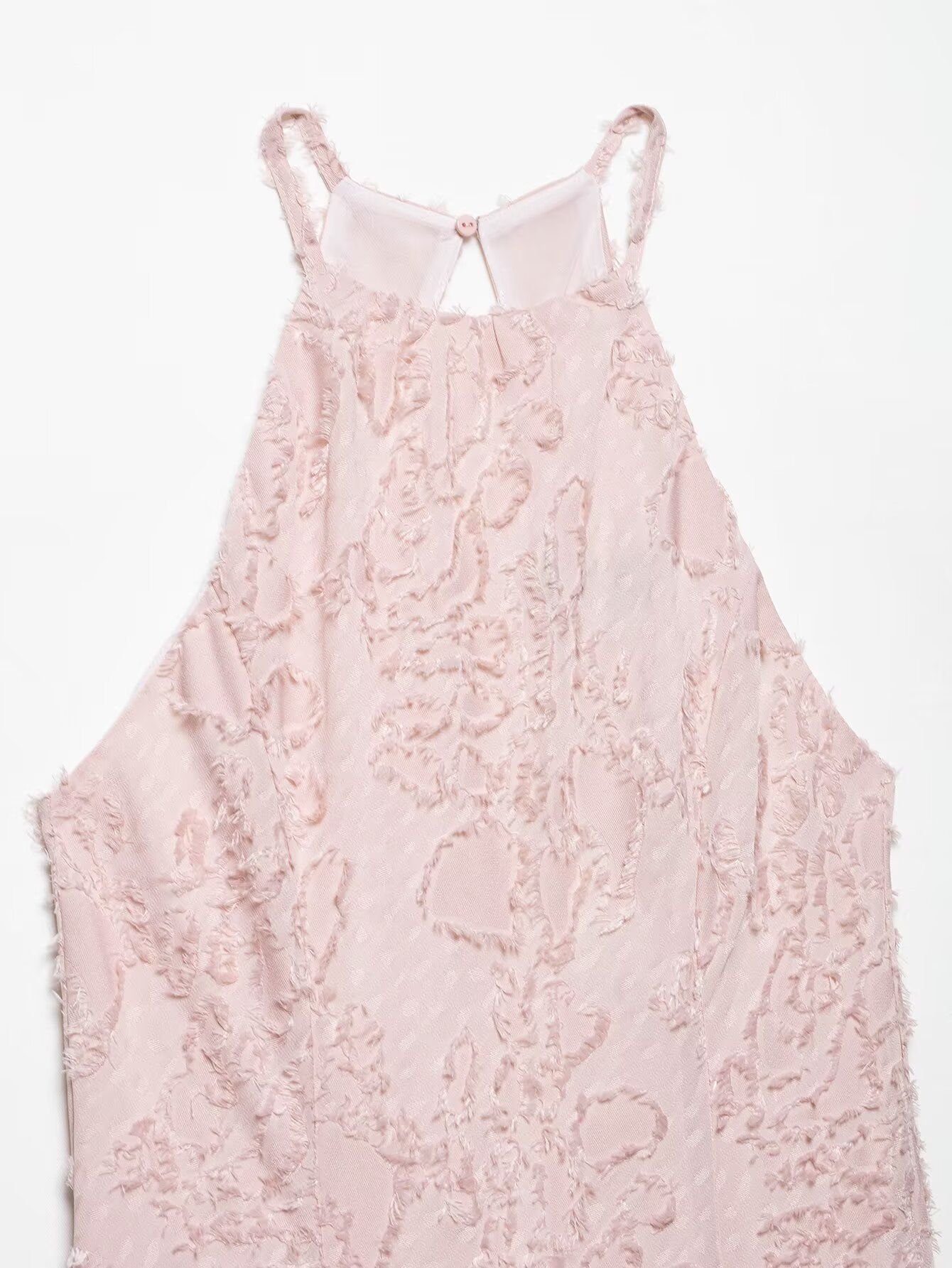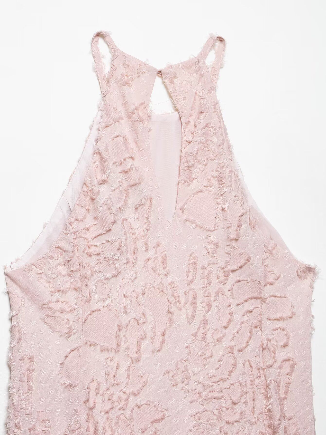 Exportación Transfronteriza de Aliexpress Ropa Europea y Americana 2025 Verano Nuevo Diseño Halter Za Vestido Elegante Jacquard